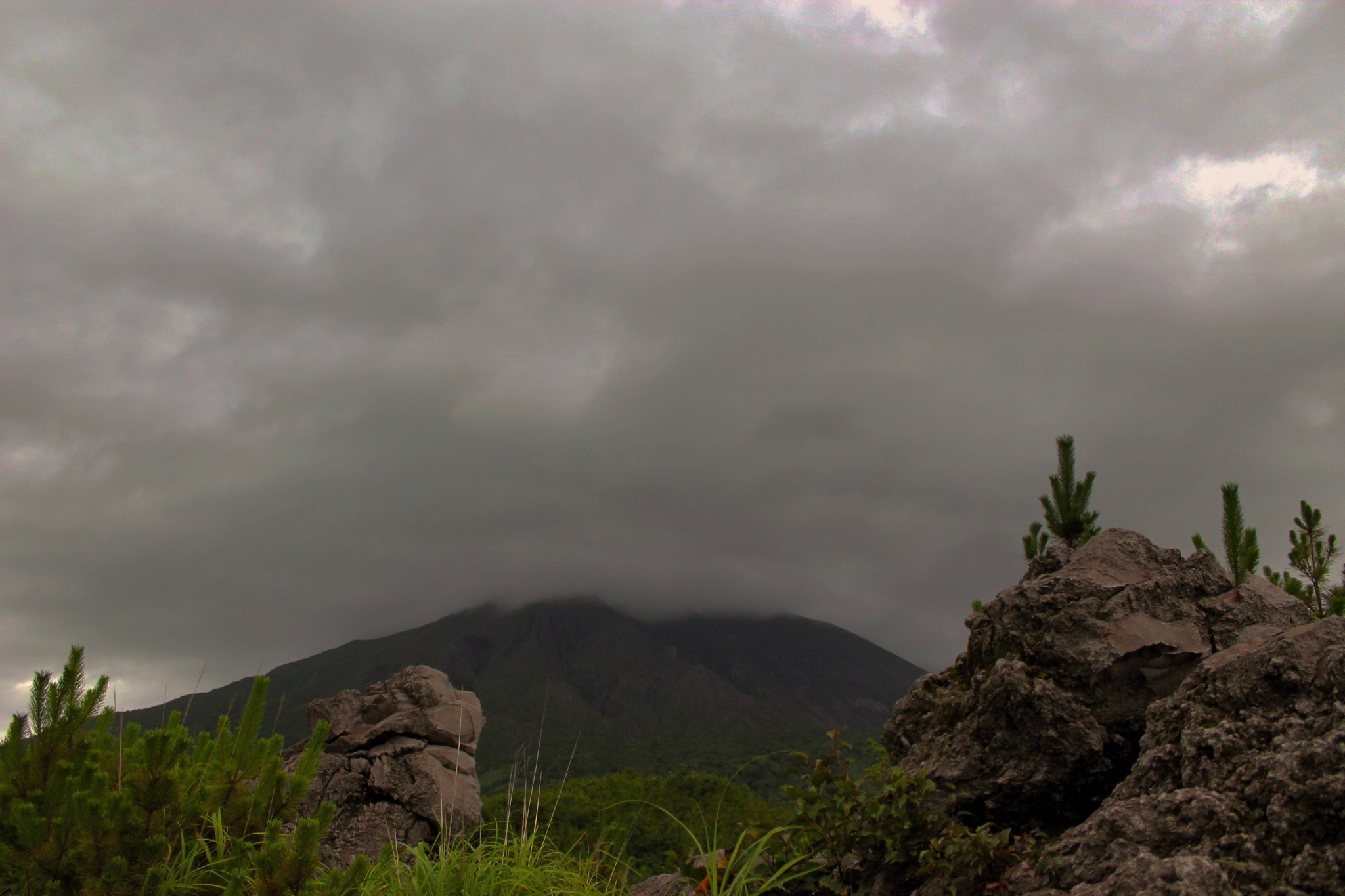 My Sakurajima trip was on a rather gloomy and dull summer day when clouds were heavily and stubbornly covering the sky. Even though it was steaming hot and awfully grey I still remember the extraordinary beauty and nature spanning around. Even bad weather could not undermine the natural, densely green and rocky landscape. The volcano island of Sakurajima is located in Kagoshima bay. Not only is it one of the world’s most active volcanoes, but also the most stirring symbol of nature around Kagoshima prefecture. Constant but minor eruptions frequently change the city landscape, covering the air with a black ash.