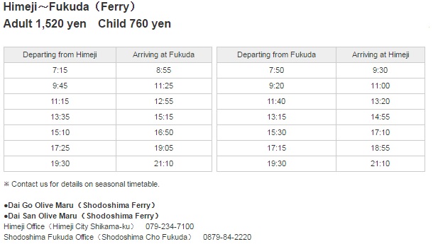 From Himeji port to Fukuda port, the one-way ticket is 1520 Yen.