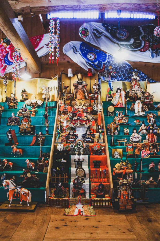 Nelle case, le famiglie espongono repliche in miniatura degli elmetti o le cosiddette gogatsu ningyo (bambole di maggio) raffiguranti dei guerrieri. Si trovano spesso anche riproduzioni dell’eroe Kintaro, protagonista del folklore giapponese. Secondo la leggenda, si tratta di un bambino dalla forza sovraumana, cresciuto da una strega di montagna e famoso per aver lottato contro una carpa gigante. È usanza esporre una bambola di Kintaro in occasione del Kodomo no Hi, per augurare che i bambini crescano altrettanto forti e coraggiosi.