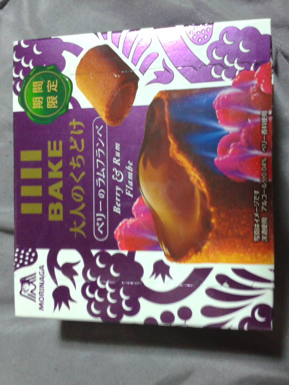 Inside there are about a dozen individually-wrapped chocolates, each with crunchy coatings and deep-flavoured chocolate inside. Again, the illustration on the box implies quite a liquid center, but this chocolate is quite solid, and I’m not so sure that I can taste the “flambe” aspect of the chocolate. Also, the berry notes aren’t too over-powering. What I am left with is a decent chocolate that is very reminiscent of rum-raisin ice cream.