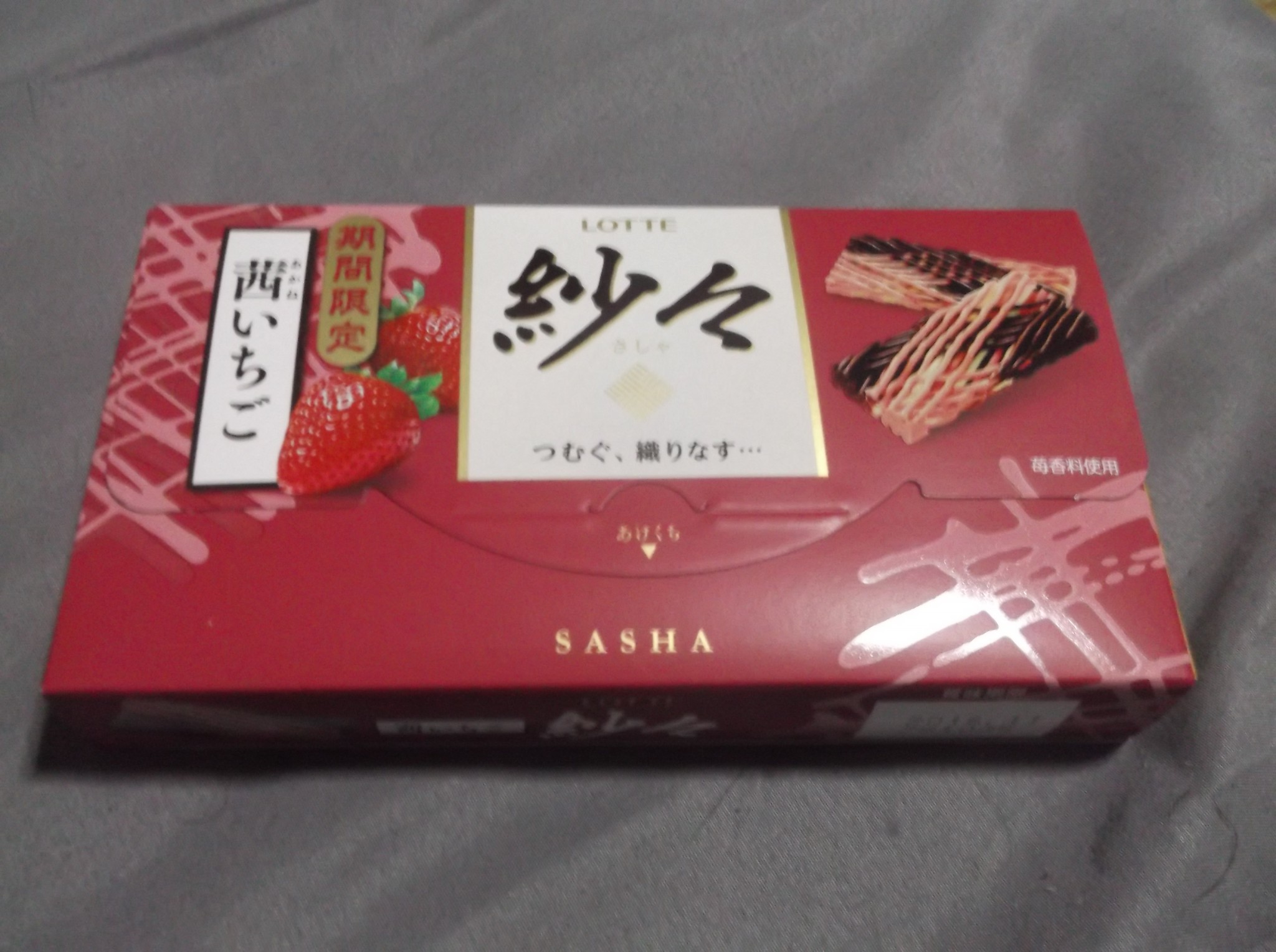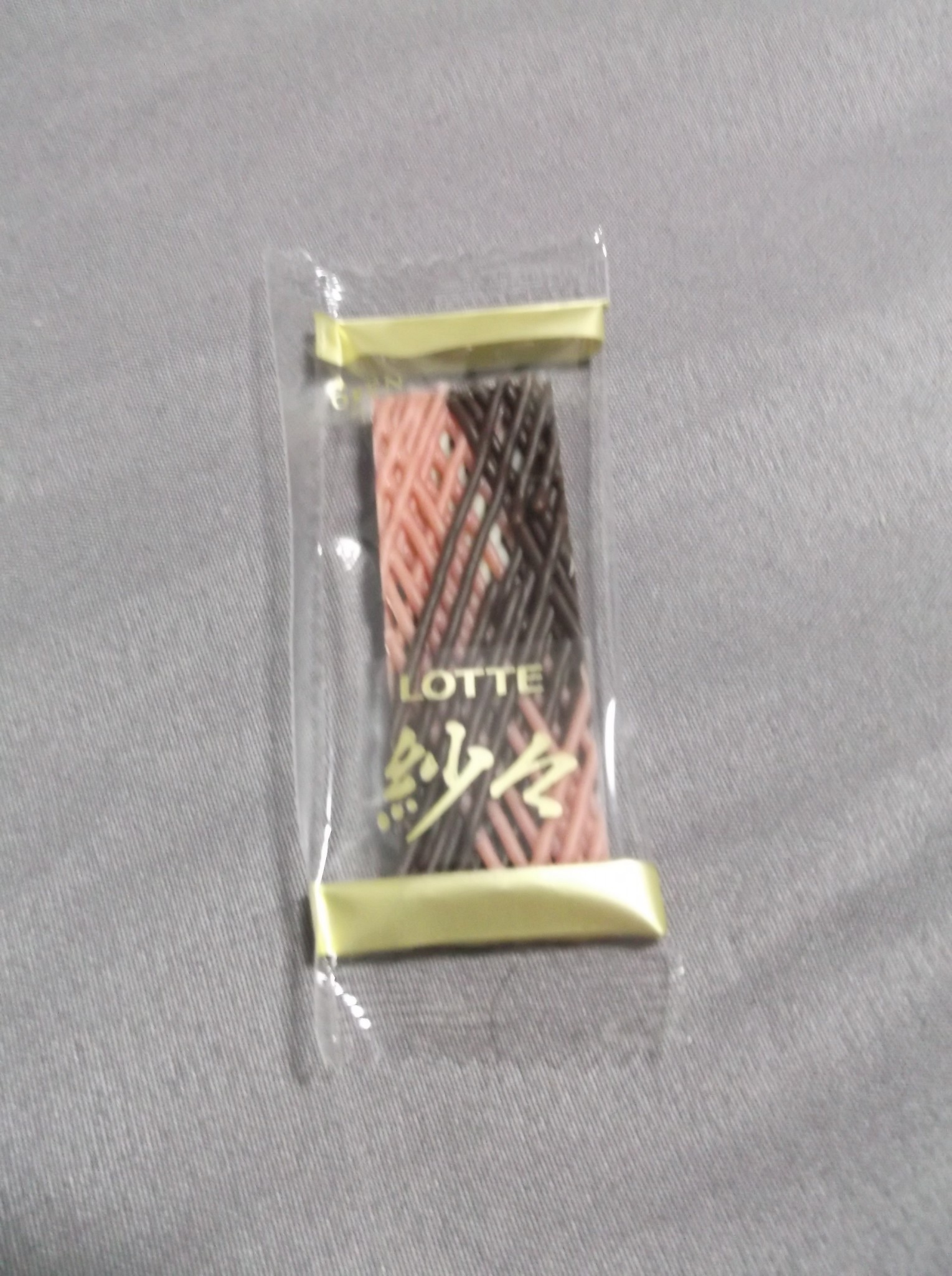 I don’t know who “Sasha” is, but she clearly likes nice elegant things; opening the pack reveals a selection of individually-wrapped chocolates, each one composed of layers of delicate lacy chocolate. These laces are comprised of milk, white, and strawberry chocolate. It is a very intricate design, and I feel that this is usually reserved for more special occasions. But because the chocolate is really quite good, I’ve found myself just eating these while doing some work around the office. The combination of three chocolates leaves me with a similar taste impression to a good strawberry milkshake, and the lacy layers give a nice crunchy texture.