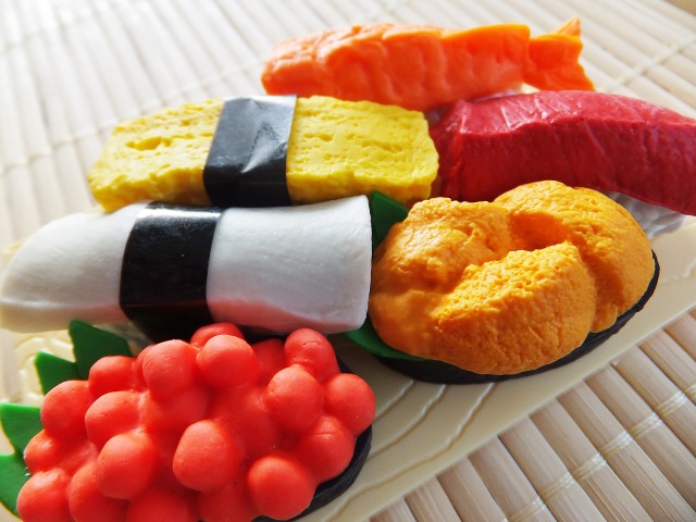 Another omiyage idea are sampuru (サンプル, sample), plastic replicas of food, which you will often see in the display window next to the entrance of restaurants with the aim of showing by passers the dishes offered on the menu. These plastic hand-painted replicas are nicely detailed and have an artistic efficiency you will appreciate when looking at them with the added effect of instantly increasing your appetite. A bowl of ramen (traditional soup with noodles and pork broth) might be a bit too big and heavy, but a portion of sushi, Japanese sweets and many other elements of Japanese cuisine are an unexpected gift that allow you to continue telling your stories about the trip. Some are even converted into key chains!