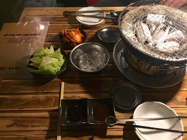 As a foreigner in Japan, I was excited to learn about and be exposed to the popular concept of tabehoudai Japanese BBQ. This phrase, that is often paired with nomihoudai, is the all-you-can-eat and all-you-can-drink concepts at some izakayas in Japan. “Tabe” comes from the verb “taberu,” “to eat” and “nomi” comes from the verb “nomu,” “to drink.” These options are typically found in restaurants that can host large groups, but some smaller restaurants have also adopted the concept. The idea is you pay a certain amount for a table/time slot and the rest is up to you. How much can you eat or drink in 2 hours? Some are even just 15 minutes!