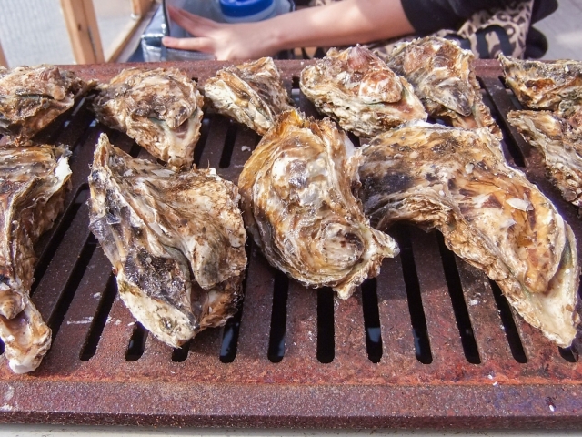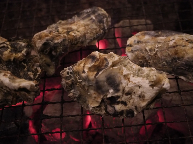 Even before ordering our first oyster, crackling, explosive pops punctuated our “how much can we eat?” question. The Fukuyama oyster house sounds like a gun range at times, fragmenting oyster shells burst under hot pressure. Don’t be frightened by sea-shell shrapnel, though! The cooking method has a safety mechanism.