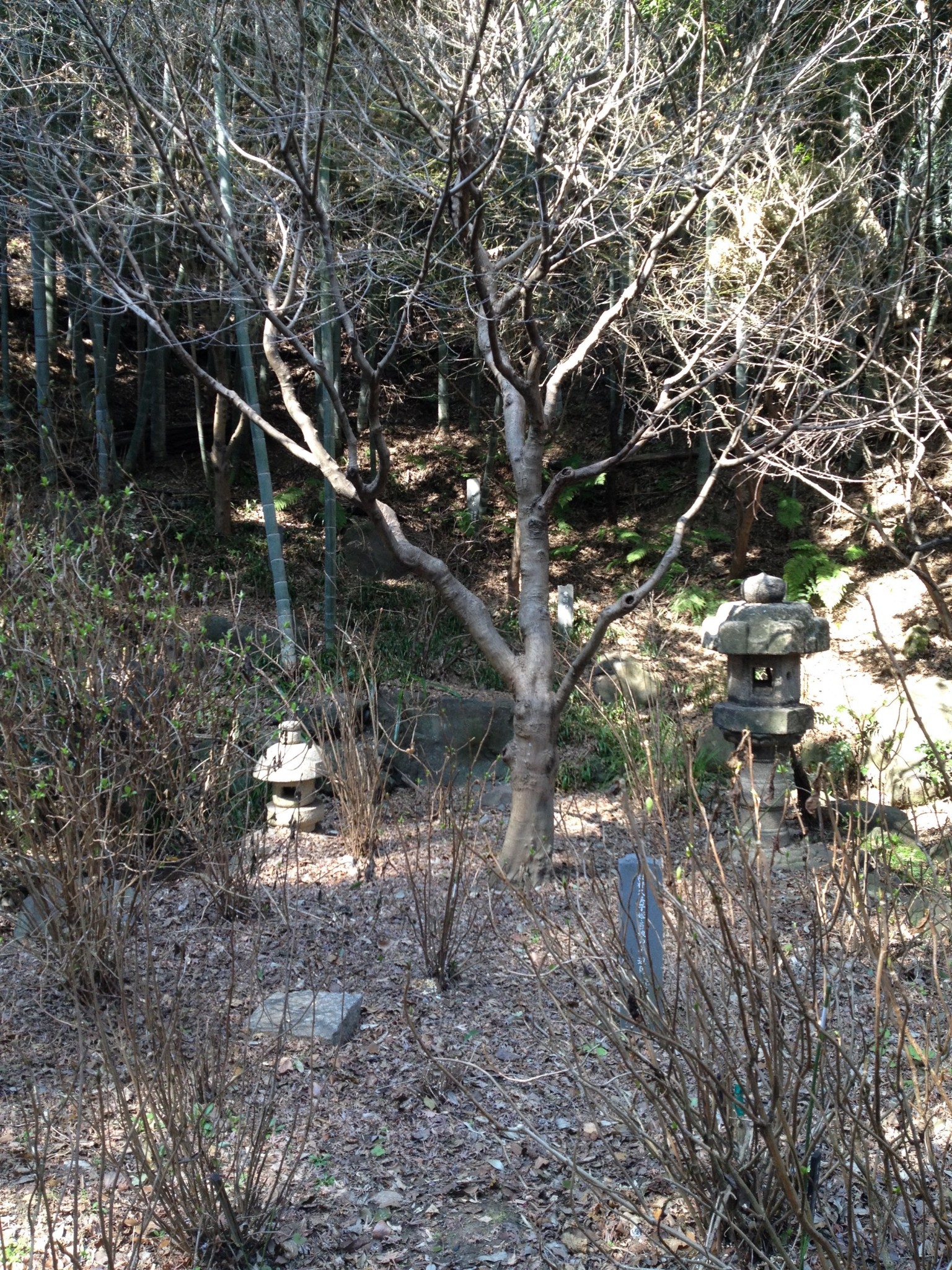 At the rear of the Kamakura-gu shrine, a canopy of trees blankets a tranquil garden dotted with statues. Some steps to the left of the grounds lead to small cave where Prince Morinaga was held prisoner and eventually executed. After being sidelined, Ashikaga captured Prince Morinaga and was kept prisoner in the cave by Ashikaga Tadayoshi, Takauji’s brother. The prince was ordered to be executed in 1335 during a retreat from Kamakura.