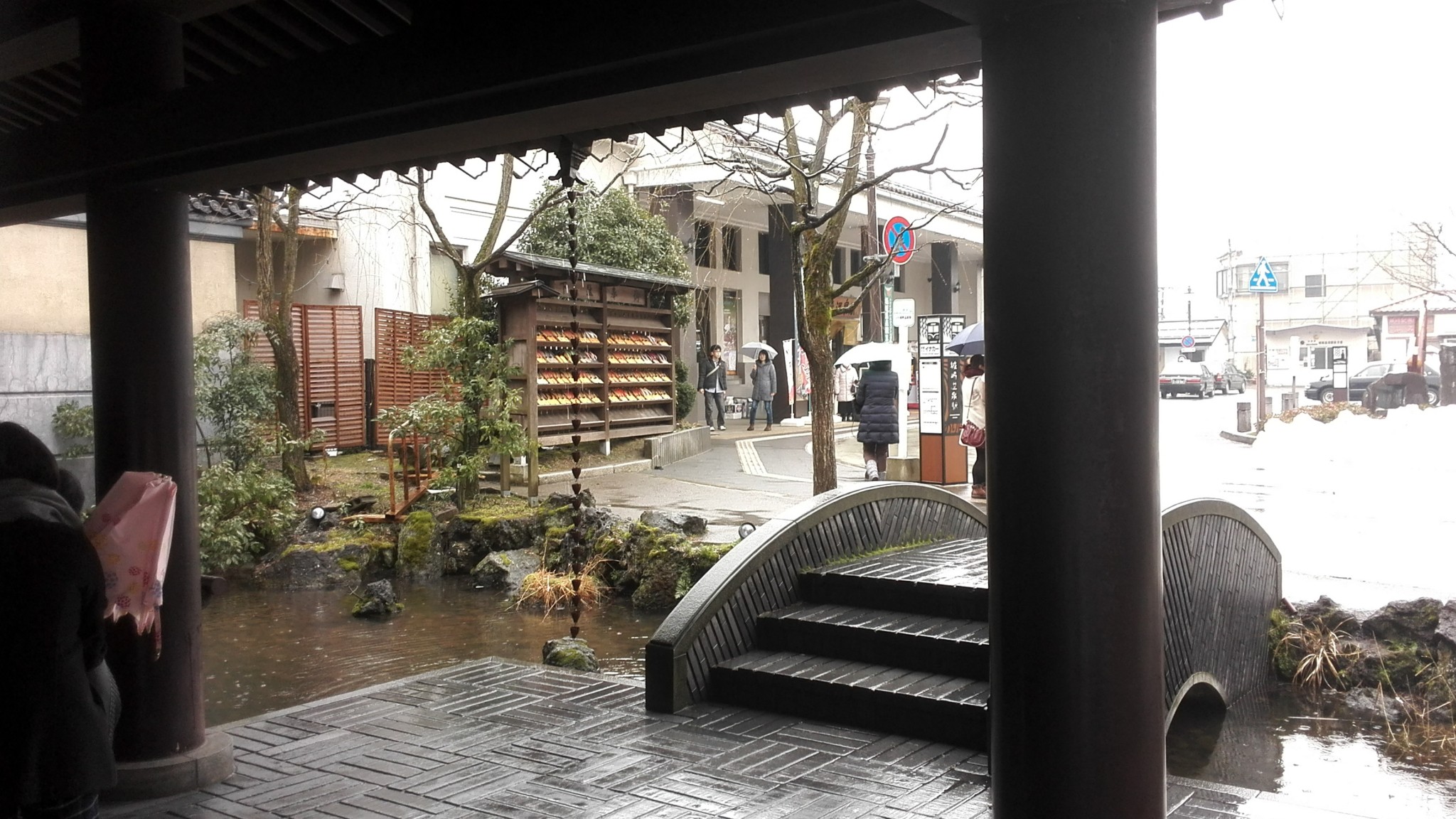 Next we headed back toward the main road toward the Mandara-yu bathhouse. It’s located a little off the main road, less than 2 minutes by foot. The bathhouse itself looks spectacular, but the inside is a little small. It has a small outdoor wooden bathtub, which feels really nice but can be a bit competitive. It is said that the hot spring water that Mandara-yu uses suddenly sprung after a monk prayed for 900 days at Onsen-ji temple.