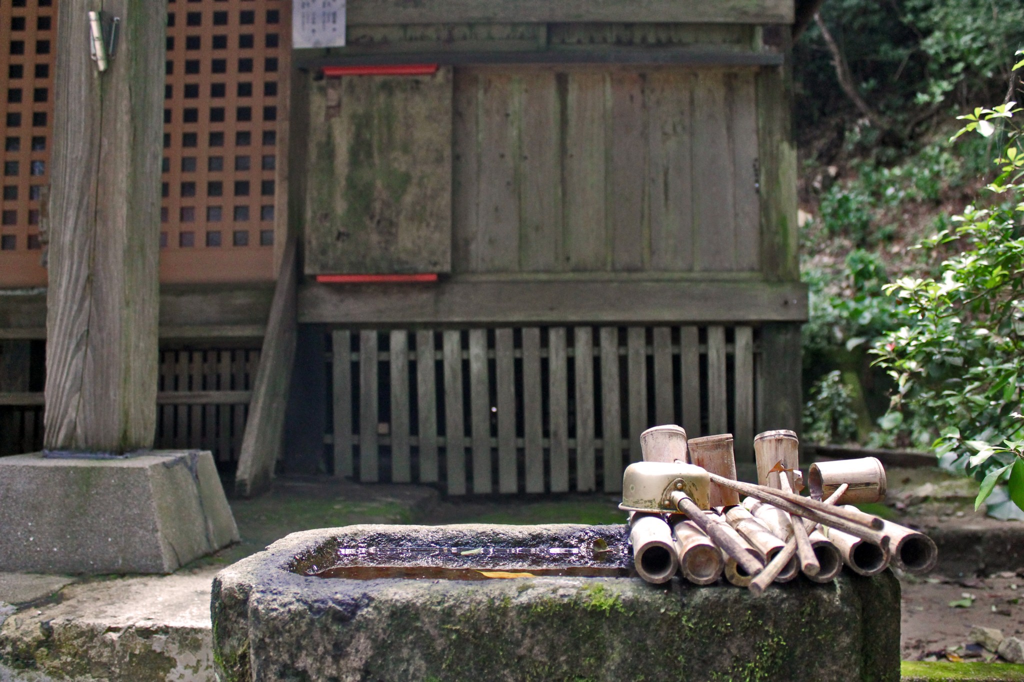 When I finally managed to get through dense branches I came across a tiny red shrine squeezed between monumental wet rocks. Clear and cold water was rhythmically dripping down making a faint sound among the heavily packed trees and other plants. It turned out that it is a holy place called Chigo No Miya devoted to a boy who lost his life after falling into the river. Local people believe that the water which constantly flows over the surface of the rocks is the cry of a mother who found her dead son and brought his body to the top of the mountain.