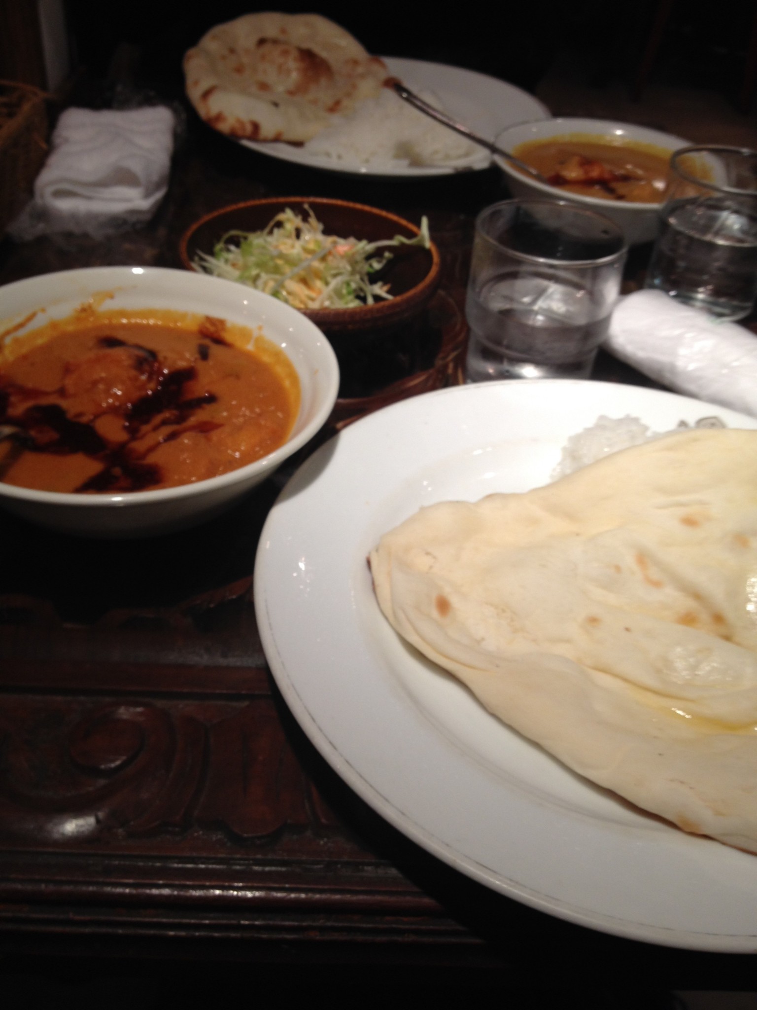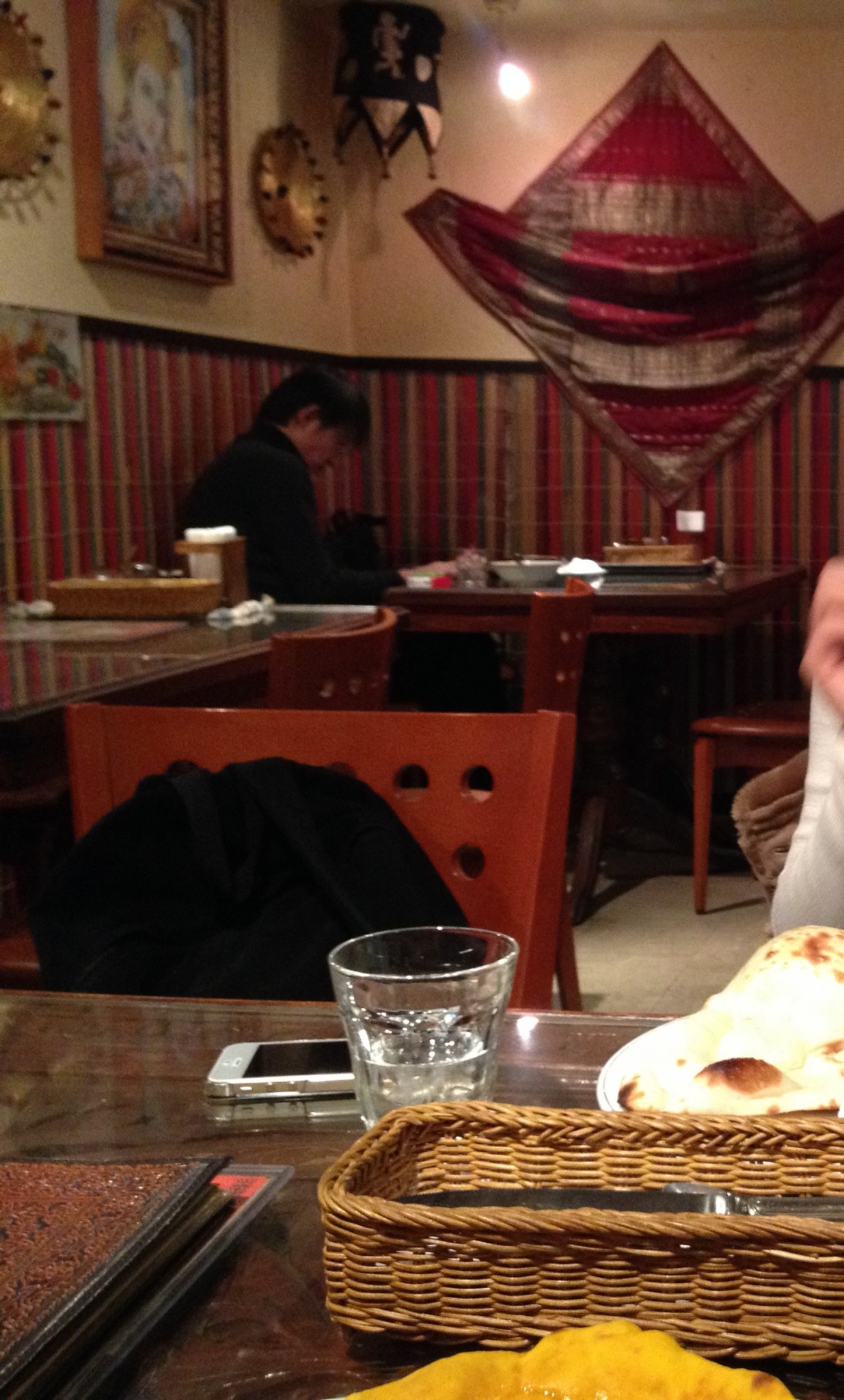 As if an entrance to wonderland the door to the restaurant was surrounded by statues of Indian Gods and Goddesses and coloured fabric. It was a change in scenery from Sapporo, or from all of Hokkaido for that matter. We were greeted by a very friendly waitress who showed us to our seats without any delay. The inside of the restaurant was decorated with Hindu artwork and statues, and though it was quite small, there was a shop where you could buy incense and curry of all types, even blue -whichever flavour blue is. The tables were ornate with carvings and there was Indian music playing in the background. The atmosphere was amazing, you could even see and speak to the chef as he was cooking.