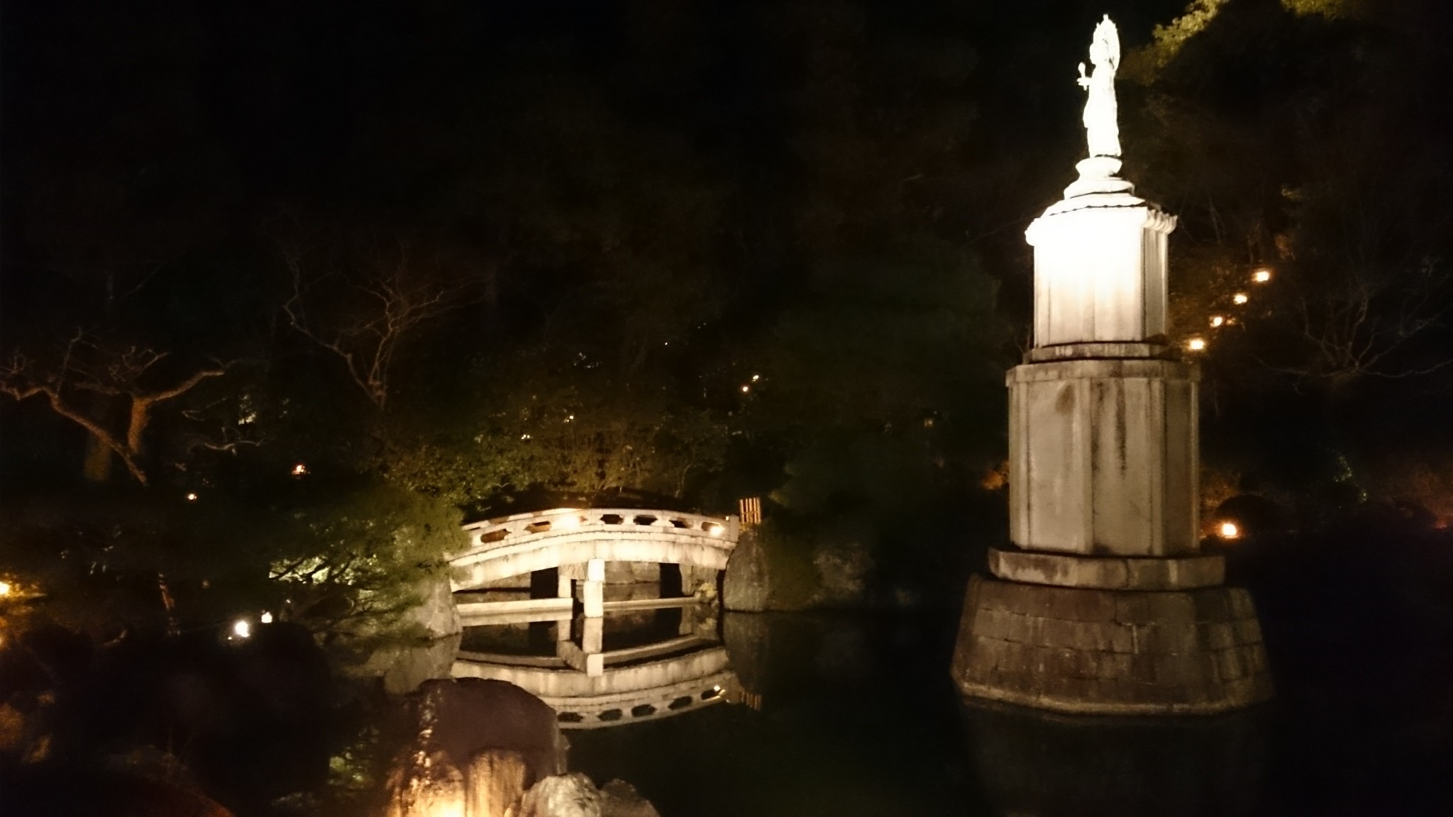 A stroll around the Maruyama Park is good for many other little things too. These lamps are actually made from bamboo, and you can cross a little rock bridge over them.