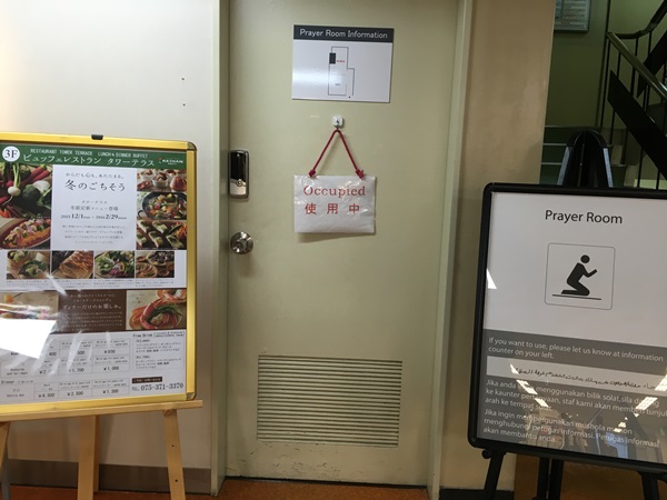One may also find many humble prayer rooms in Kyoto, such as the one in the Kyoto Tourist Information Center, on the third floor under Kyoto tower. There are some procedures to consider when you want to make use this prayer room: