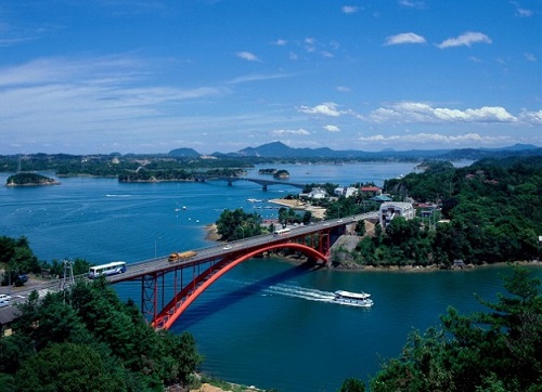 Amakusa in Kumamoto has an astonishing view that combines about 120 islands and their deep green mountains rising from a clear blue ocean. This is a One Day tour course, where you can visit islands via a cruising boat, enjoy the ocean view hot spring and eat lunch full of fresh seafood from the local fishery.