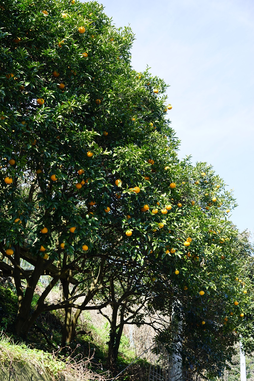Here and there I could see lines of trees, from which plump tangerine-like fruit hung. They are no other than one of the treasures or symbols of the island, a sweet and sour citrus fruit called Amanatsu, which literally means “sweet summer”. The fruit is harvested from April onwards every year.