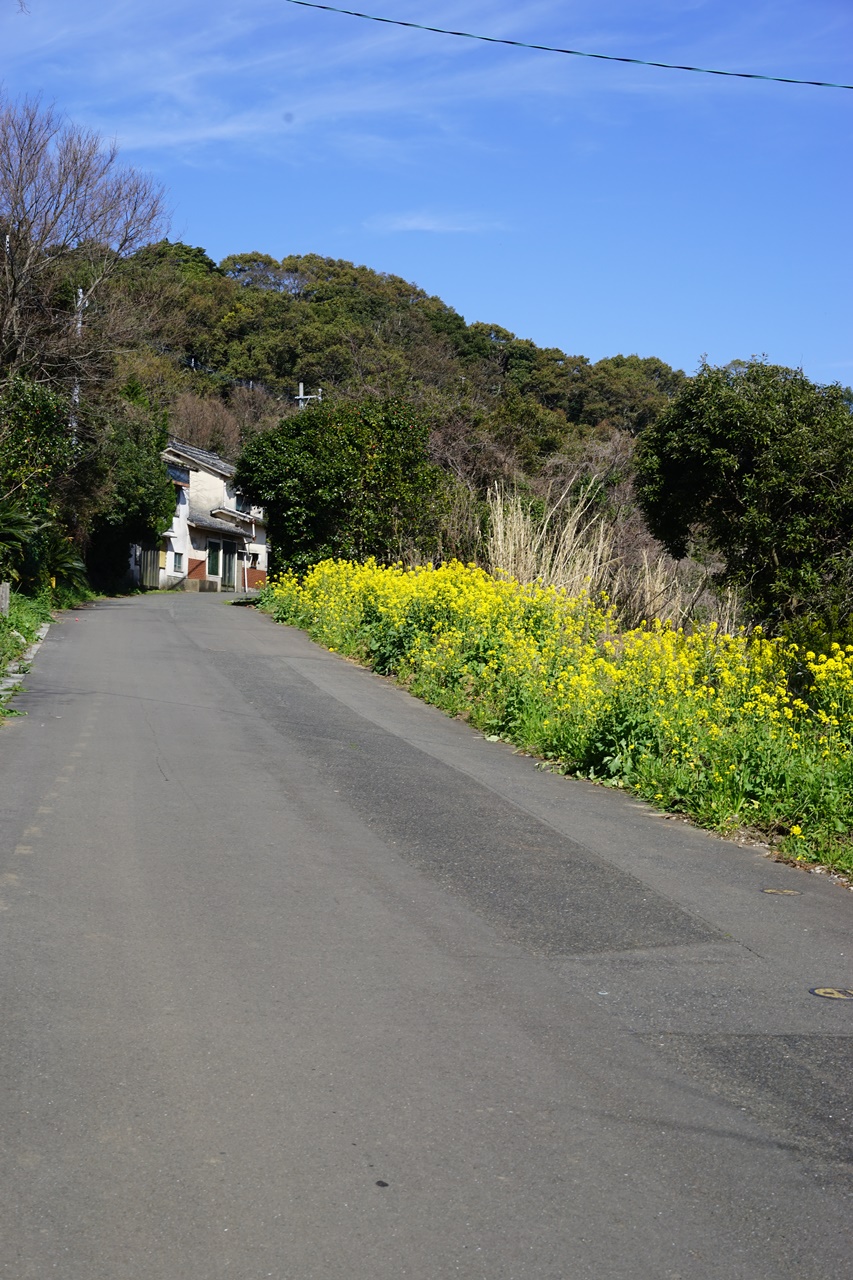 I took the east route, first going along the coastline before turning to a path winding uphill. As I slowly pedaled up the slope, I was greeted with breathtaking views of yellow canola flowers, a harbinger of spring, blossoming against the vast sea and seemingly motionless boats and ferries in the background. The advantage of riding a bicycle over taking a bus is that you can go at your own pace (provided that you do not have athletic travel companions who are going far too fast). Stop along the way to feast your eyes upon the scenery, or to take pictures of flowers, the sea or deserted houses.