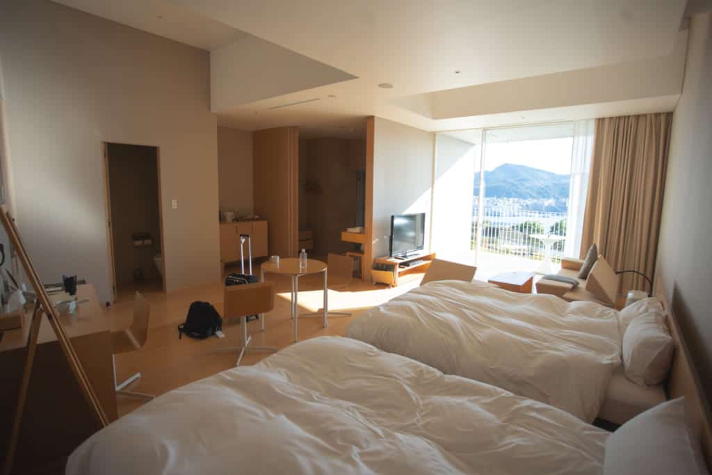 Each room here offers a view of the bay of Nagasaki and have their own private terrace where you can take in the beautiful views of this port city. These rooms are also quite spacious at 46 square meters and offer luxurious additions such as salt and herbal baths, and even an infinity pool for its guests.