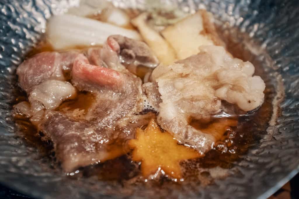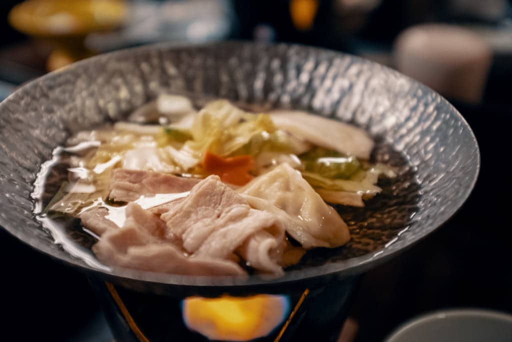 The kaiseki dinner they serve is sourced from local ingredients like seasonal vegetables and mountain trout. It also includes personal hotpot bowls that are heated by special cooking candles for you to cook your own vegetables and pork right at your table.