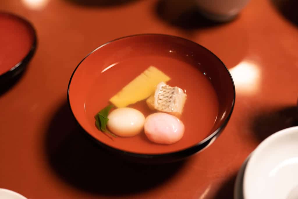 This included kuromame beans from Hyogo Prefecture that are both a sign of luck and believed to help reduce wrinkles on your skin. Also included was an anago saltwater eel served in a broth made from the bones of the eel and mochi from Nagasaki.