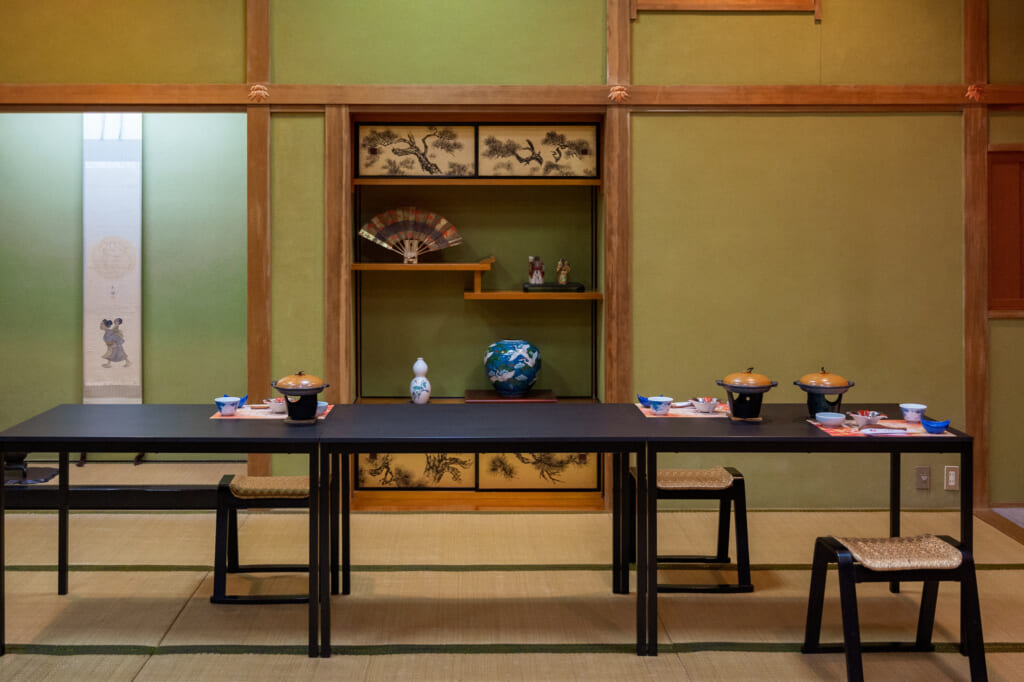 Goto Gentaro is the 16th master of Wakaeya, located in Kitsuki city just north of Beppu. It rose to fame when it became the favorite haunt of a local feudal lord, though its 300-year history proves its reputation was earned by more than just a “thumbs up” from a local celebrity. More recently, the Imperial family has paid the restaurant a visit, seven times, in fact, during the 30-year Heisei Era that ended in 2019. Goto-san showed us the room used to serve them, complete with a small stage on which Noh (classical Japanese drama) is sometimes performed for guests.