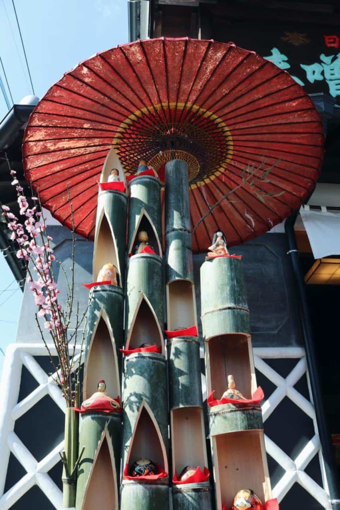 Hita has many attractive experiences year round. These range from the Hina Matsuri celebration with impressive collections of dolls and sakura (さくら – cherry blossom) in spring, the summer Hita Gion Festival with its big carriages driving around the streets, the momiji (紅葉 – Japanese maple leaves) landscape and the Sennen Akari lantern Festival in autumn, and the hot springs onsen (温泉), a refreshing way to warm up in winter.