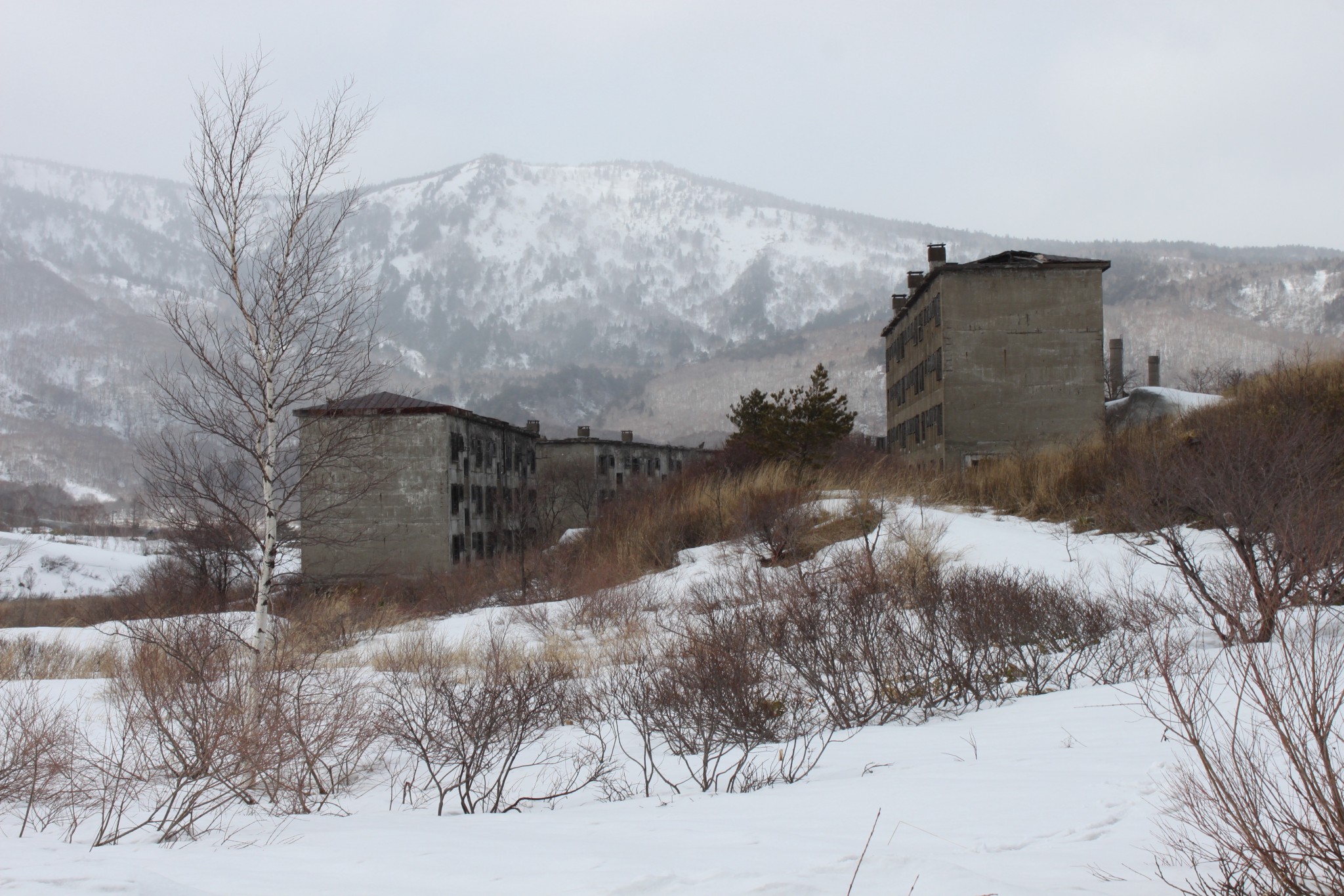 The Matsuo apartments were abandoned in the late 1970s after the mine closed in 1969. But the ruins still stand, often shrouded in mist along the Aspite Line leading to Akita.