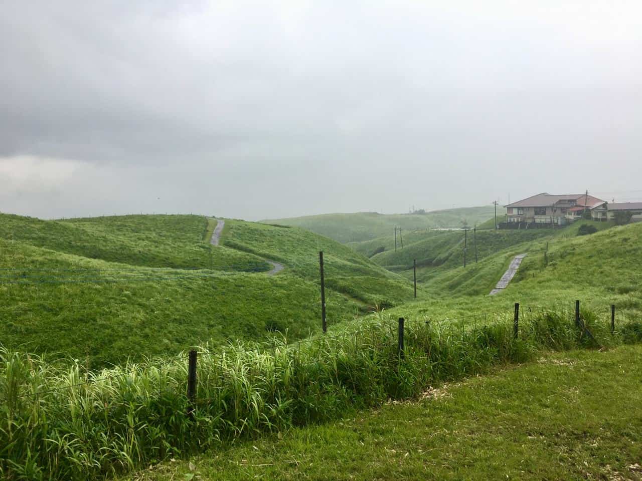 Daikanbo, a lookout point at 936 meters high, offers the best view of the north half of the caldera. It can be reached by the Milk Road, which snakes its way across the mountainous terrain and passes small farms.
