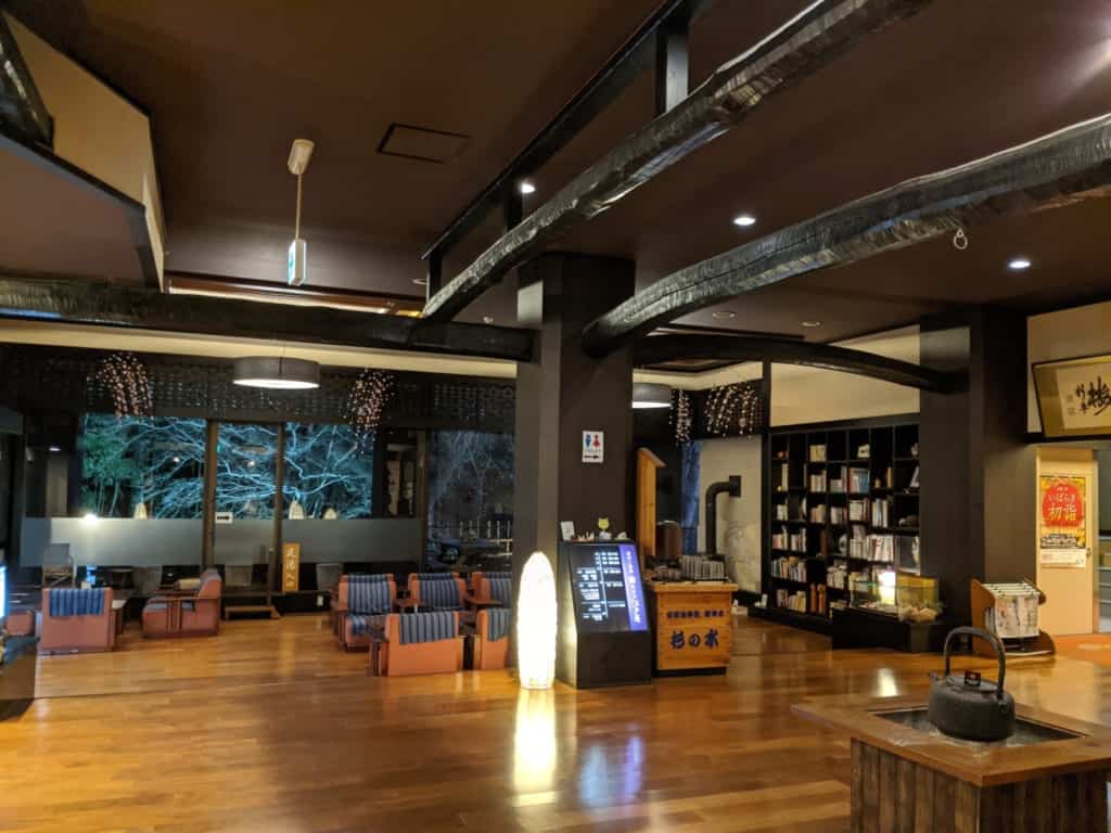 I arrived at Tsukubasan Edoya and was greeted at the front desk, given my room key, and told about the policies of the ryokan. Ryokan often include breakfast and dinner, but meals are served at set times (another feature of ryokan), so I had to decide when I wanted to eat within specific windows of time. At the door, I was given a number for my shoes in case I wanted to leave the ryokan. I also had the chance to check out the gift shop in the lobby, and a spacious seating area perfect for reading next to a set of wide, glass doors that let in plenty of sunlight.