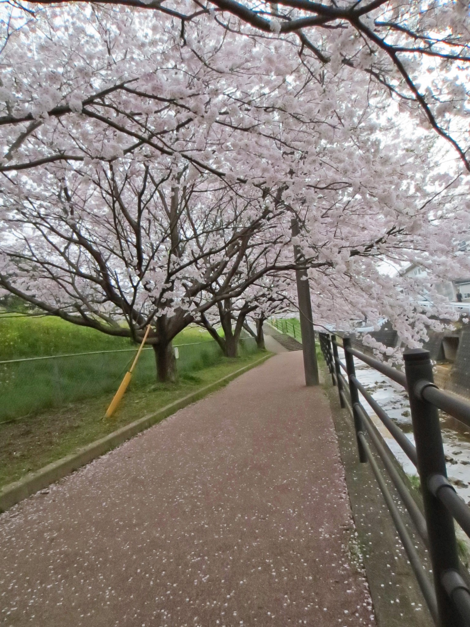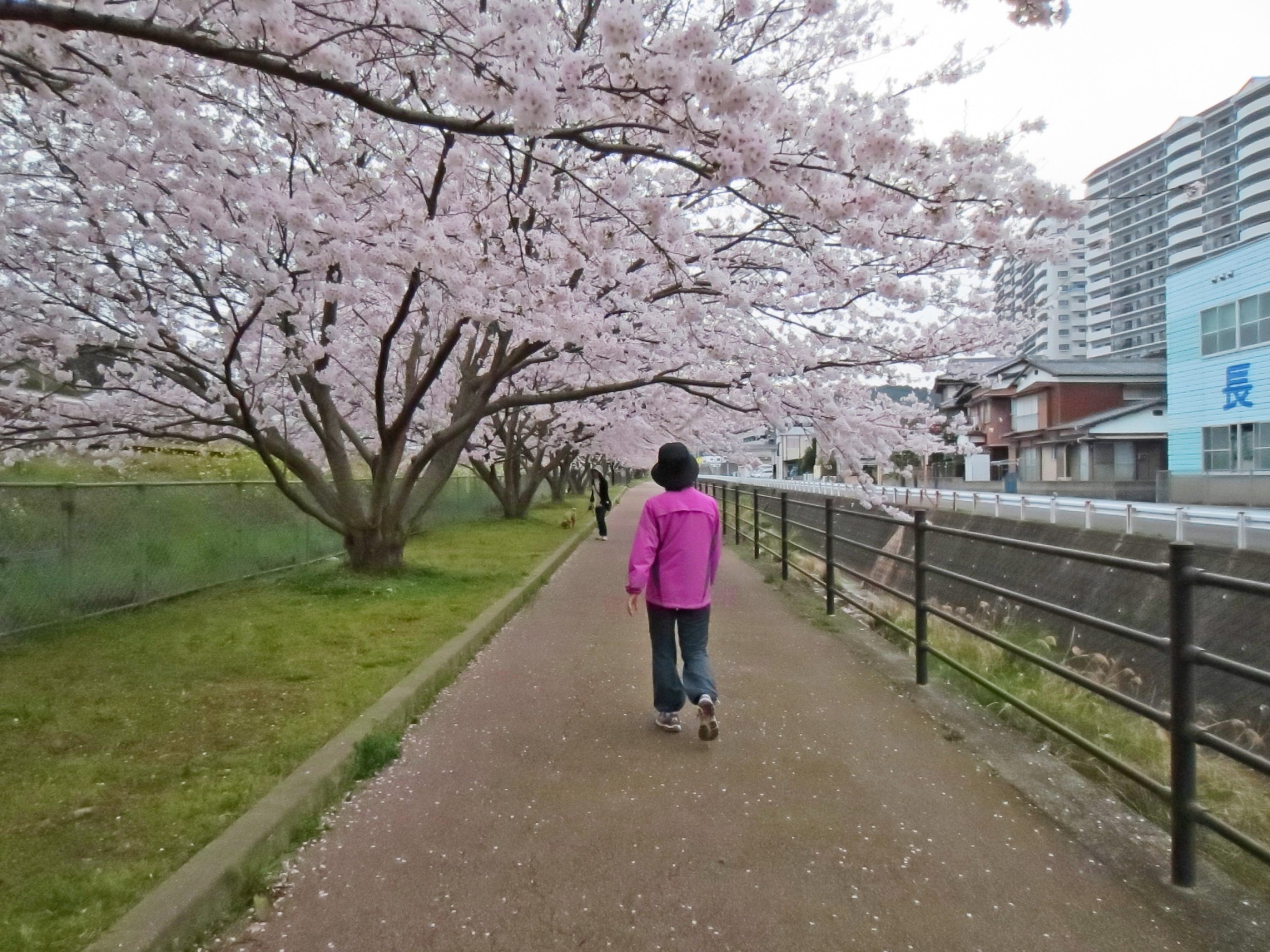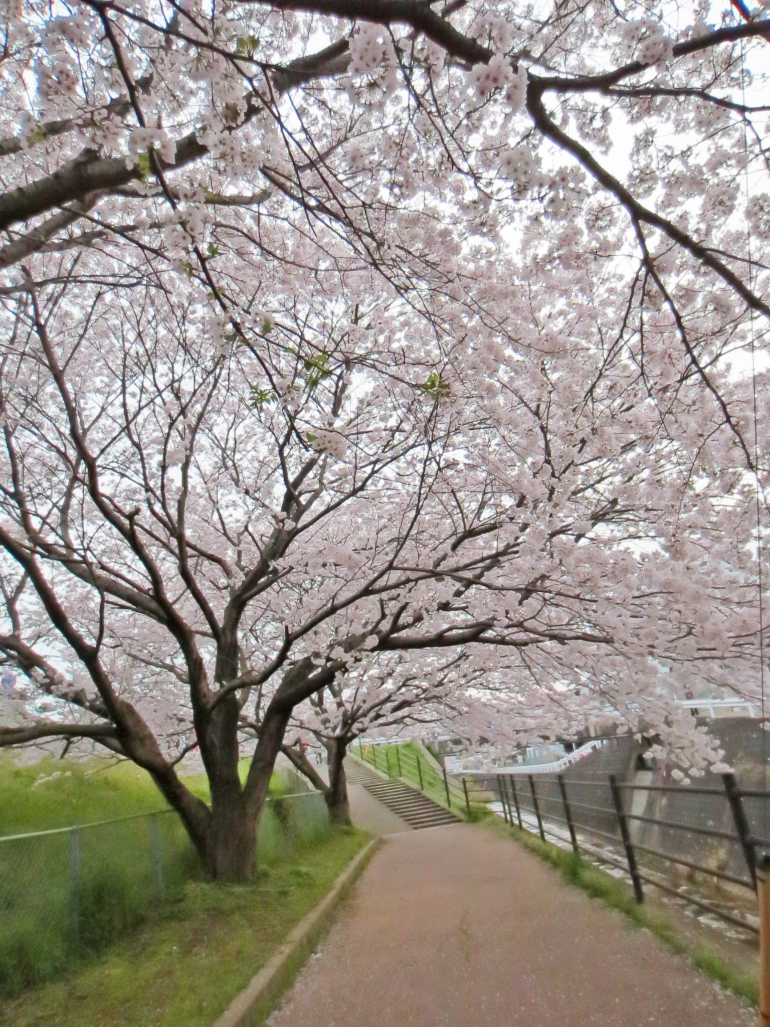 Over the years, what began as a walking path by the side of the cherry trees, became a tunnel in pink blossoms; because the branches have already reach out to the river over the waking path, making a natural flowery roof.