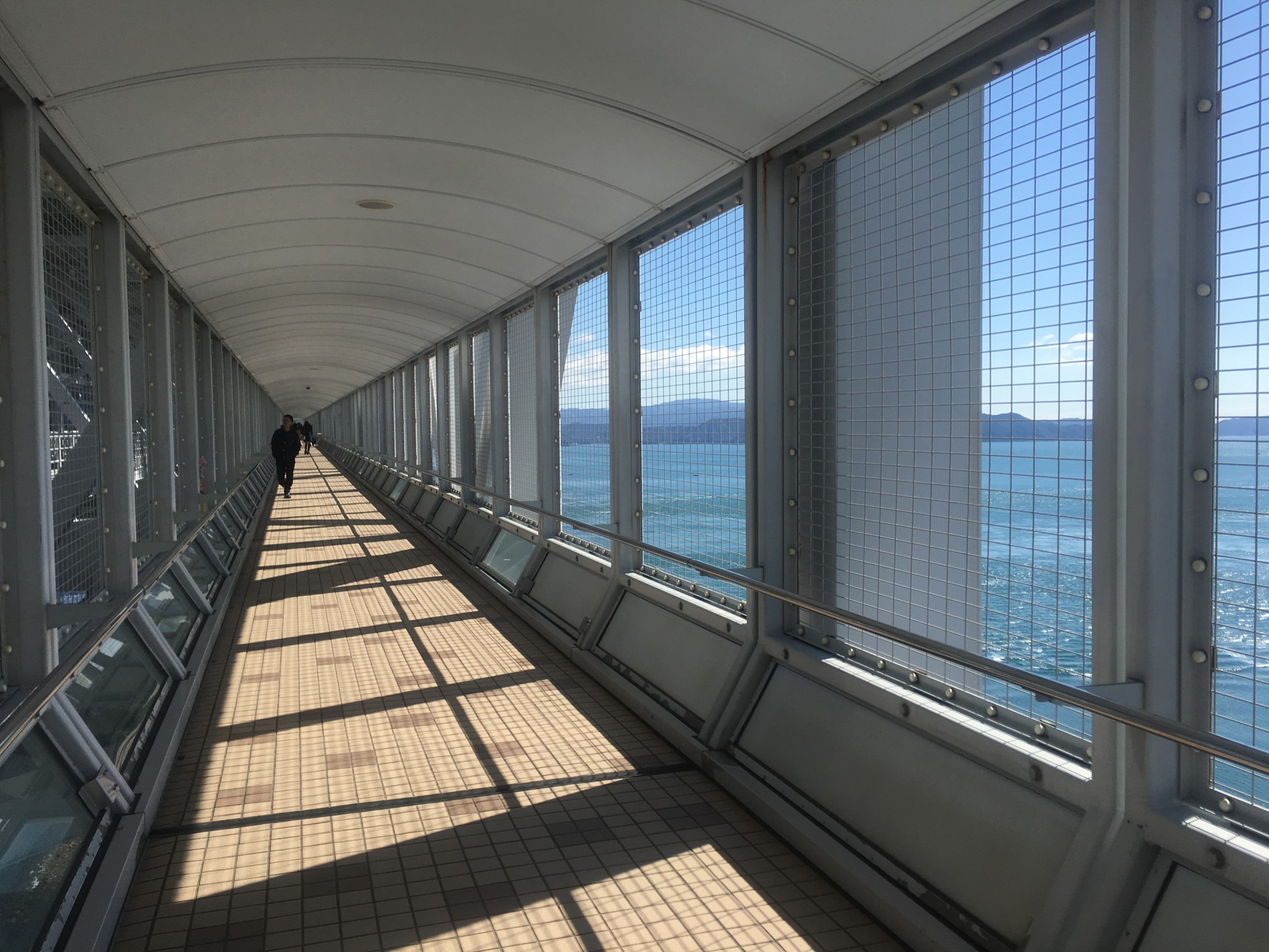 Along the way, I saw the beautiful Shikoku white sand beaches along with many people fishing at the harbor. Don’t forget to check the bus schedule. The bus for the Naruto whirlpools runs just one or two times per hour, so be sure to watch the time.