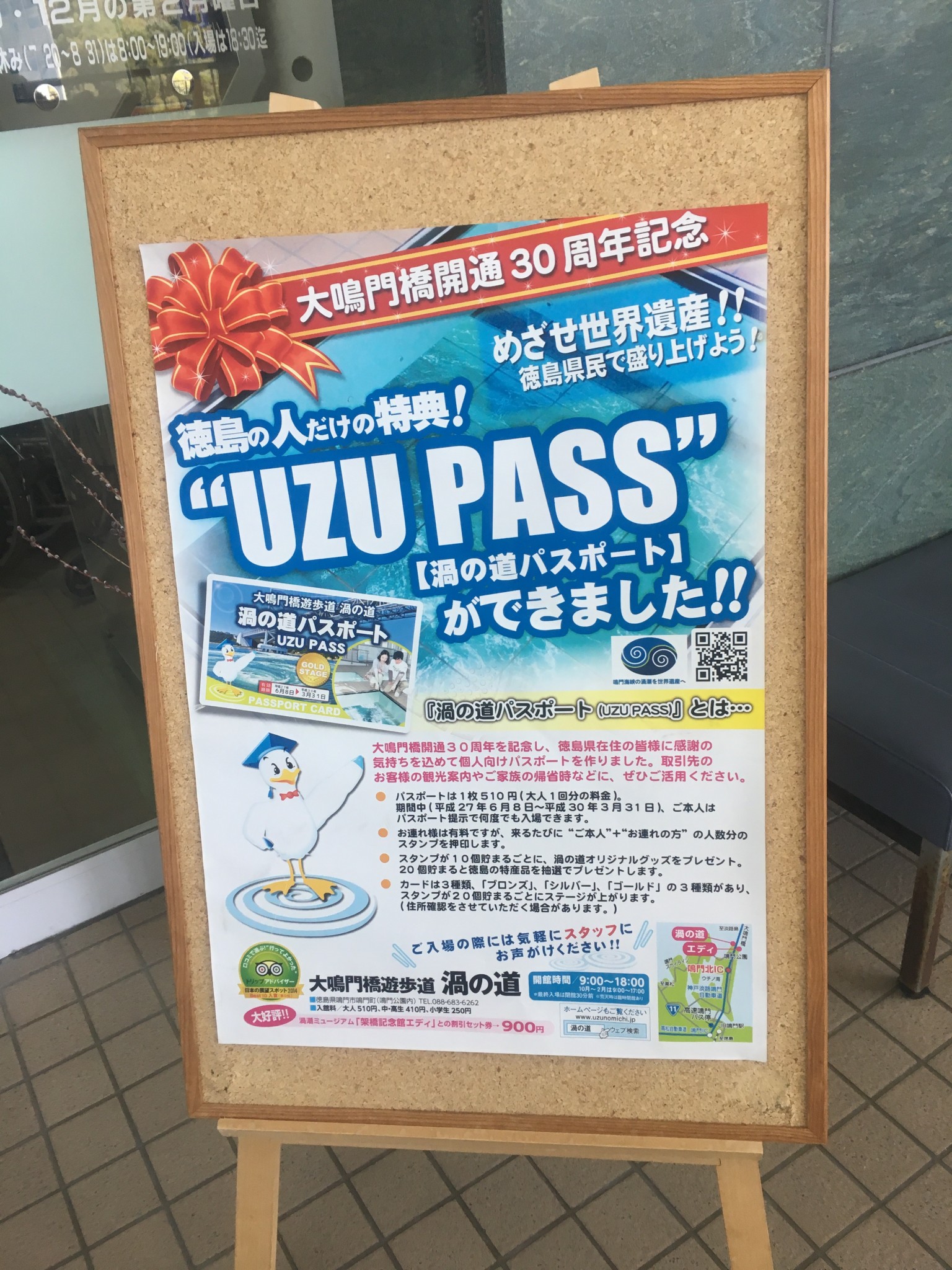 You can see the Naruto Whirlpools in two ways. You can see them from a short distance by boat or cruise, or you can also enjoy them from Uzu no Michi, a walkway that passes over the whirlpool. I visited during late winter, so I preferred enjoying the whirlpool through Uzu no Michi. If you visit during the summer, take a 1,800 yen boat ride for a close look at the whirlpool. It might get your clothes wet, but it will make a memorable Shikoku experience.