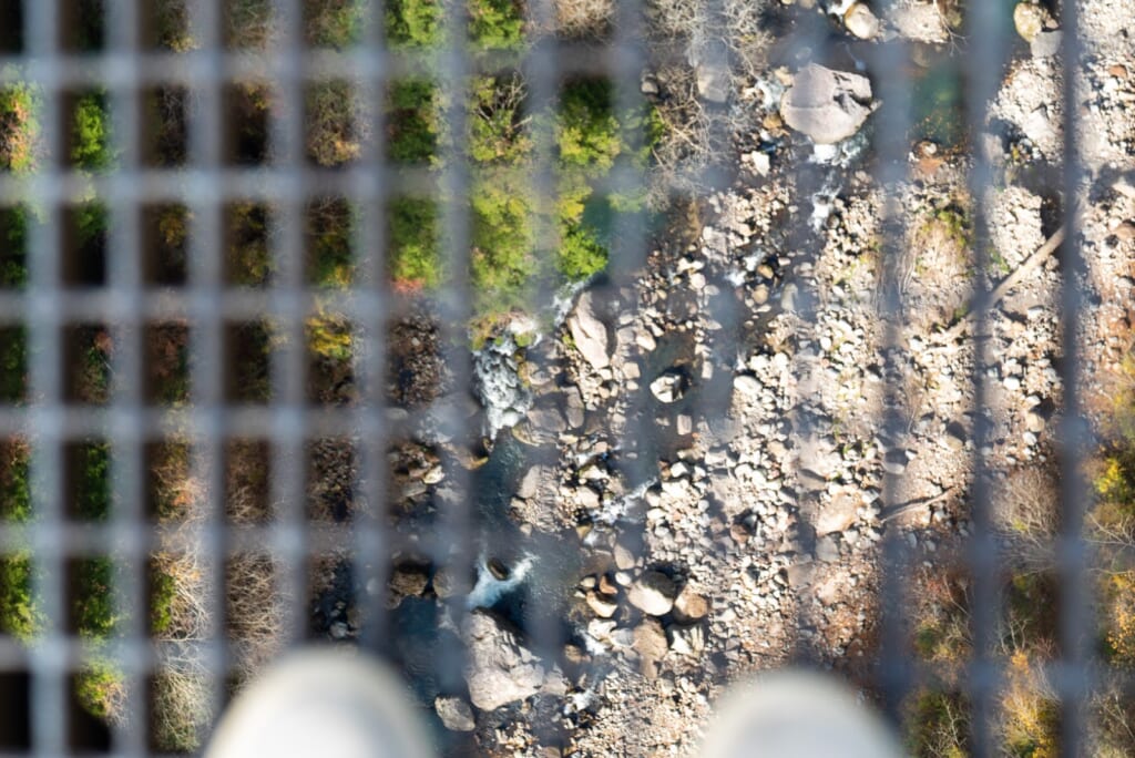 The highest section of the bridge is 173 meters above ground, and it is 1.5 meters wide. Once plans were approved, the bridge was under construction for two years, with a helicopter employed to get the suspension cables from one side of the valley to the other. Those scared of heights beware — not only is the bridge high, to reduce sway, the center strip of the bridge is constructed of a metal mesh which means you can see all the way down to the floor of the valley. Those brave enough to make the crossing, will be met with dramatic views of the falls on one side, and the valley extending off into the distance on the other. Once you make it across, you can take in the view on solid ground, and relax with an iced coffee from ’Hashi no Eki Shiratori’, or some karaage fried chicken from ‘Yamaboushi’.