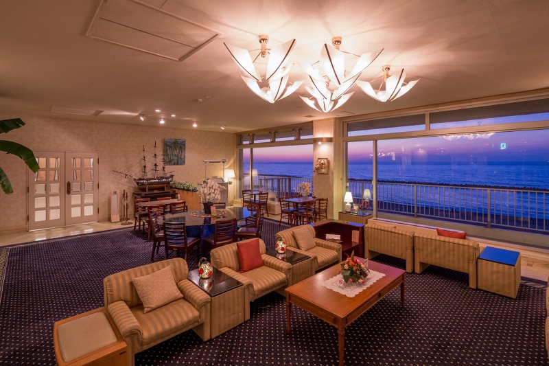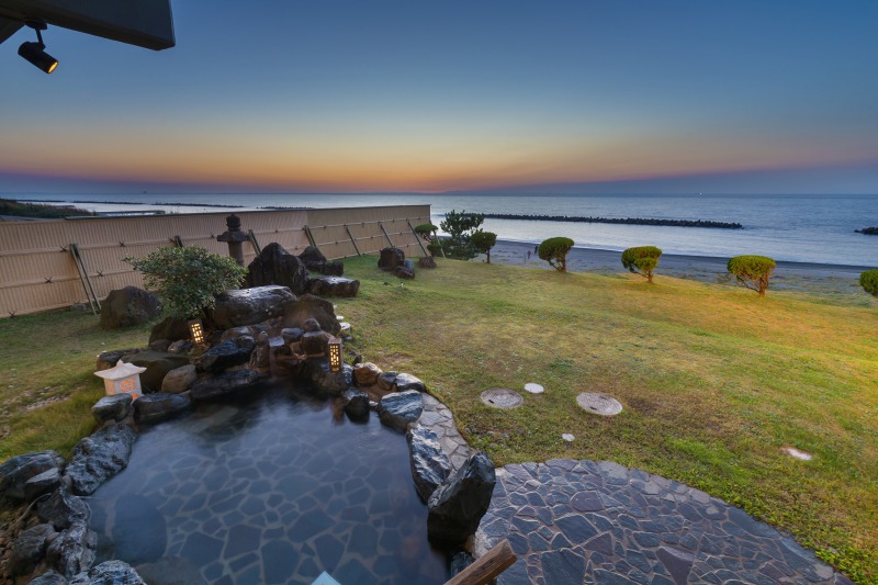 Sitting in the outdoor pool, I could clearly see the full expanse of the sky making contact with the beautifully turquoise, peaceful sea. If i stood up, I could even see little parts of the beach. To the right of me, over a small fence were the mountains in the distance and ahead of me were all the sounds, smells and delights of the sea of Japan.