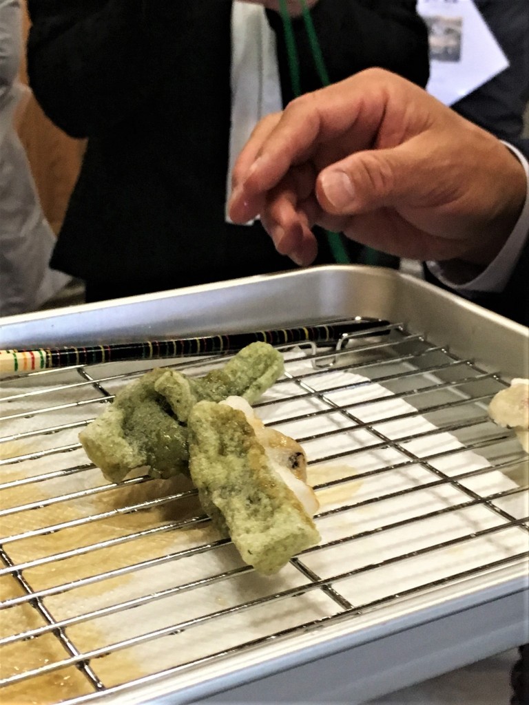 For dessert, we tasted mochi (餅): the greens are made from a local grass, with Anko (sweet red beans), all wrapped in slightly sticky rice paste. Delightful!