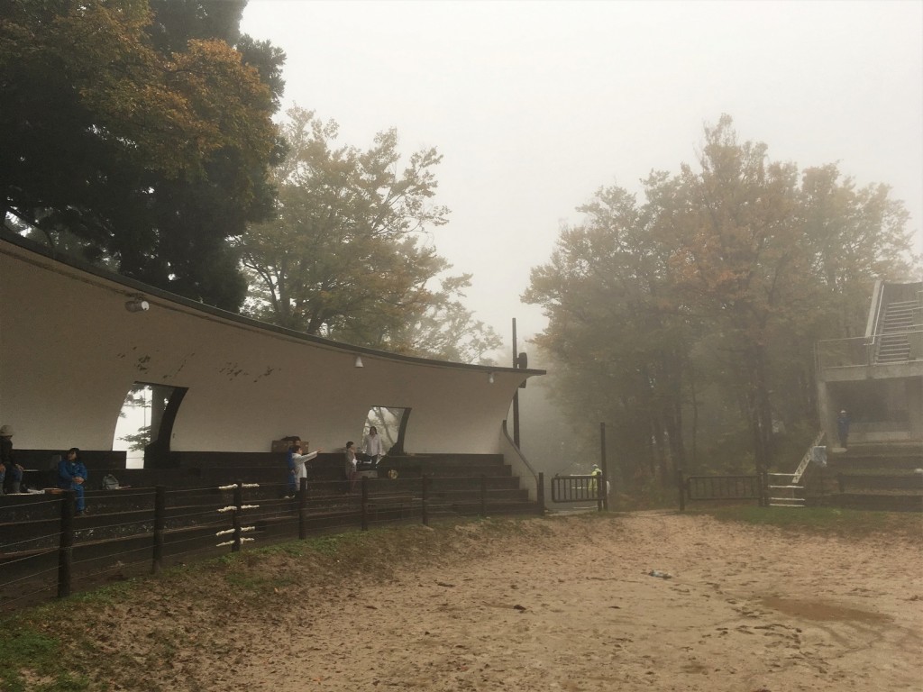 After visiting the famous bull, we went to the village arena, also called The Yamakoshi Bullfight Arena, which was created with modern architecture in the middle of the forest. The rain added a charming atmosphere (and a lot of mud)!