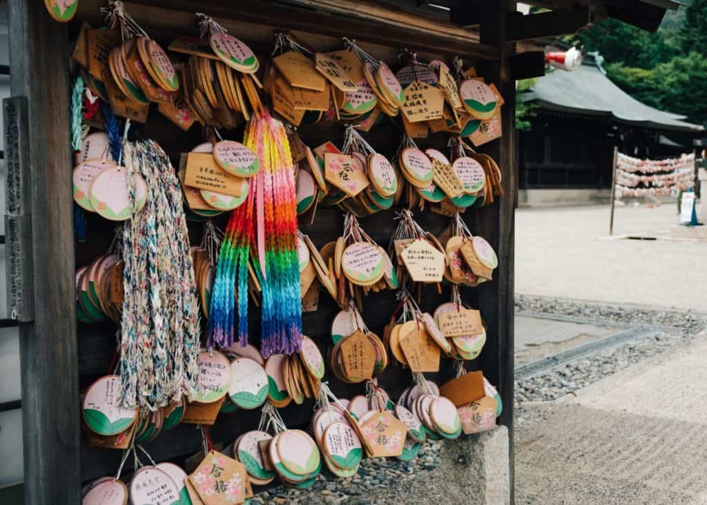 If having your fortune told by a severed ogre head is not your cup of tea, there are other ways to experience the traditions of Kibitsu Shrine. A more traditional Shinto form of receiving protection through prayer is available as well, this one taking place in a different part of the shrine. Instructions in English are available for those who wish to participate in this type of ritual, which requires a donation to the shrine. You will be led into a room where a Shinto priest will chant a prayer for your request and at specific intervals, you will be asked to participate in simple ways. At the end, you will receive a wooden plaque or cloth amulet of your choosing representing whatever you asked for in prayer.