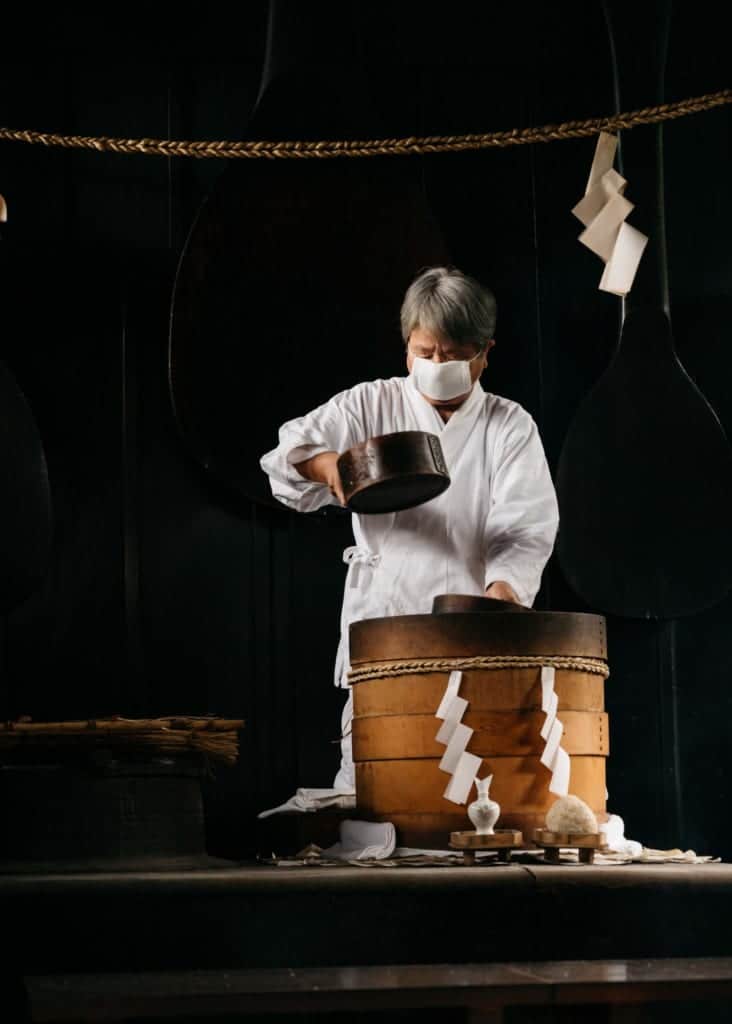 It was here at Kibitsu Shrine where I participated in the ancient ritual known as Narukama Shinji. I sat in soot-darkened Kamadono Hall, listening to a shrine priest chant my request for road safety (a constant concern navigating the narrow roads of Japan) when the sound abruptly rose from the iron cauldron. The real source of the sound is derived from the steam of rice grains as they are literally roasted in the fire-heated pot, but the legendary source of the sound is the moan from the head of Ura, the monster slain by the local hero Kibitsuhiko, said to be buried beneath the kamado (wood-burning stove) heating the cauldron.