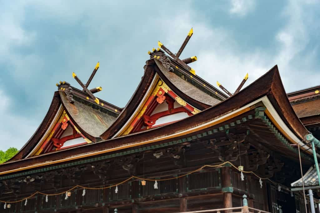 The main building of Kibitsu Shrine has a double-peaked thatched roof (known as Kibitsu-zukuri) and is designated as a National Treasure. It was built on the site where the aforementioned Kibitsuhiko was said to have lived.