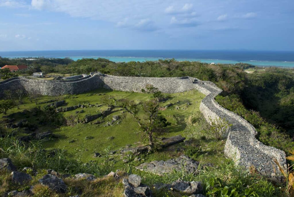 Unlike most other castles built with the softer coral-based Ryukyu limestone, Nakijin-jo Castle was constructed with unearthed rocks of grey Ryukyu limestone. The sprawling fortress is also a prime example of nozura-zumi, an ancient construction technique that piles rocks according to their natural shape to build strong undulating walls.