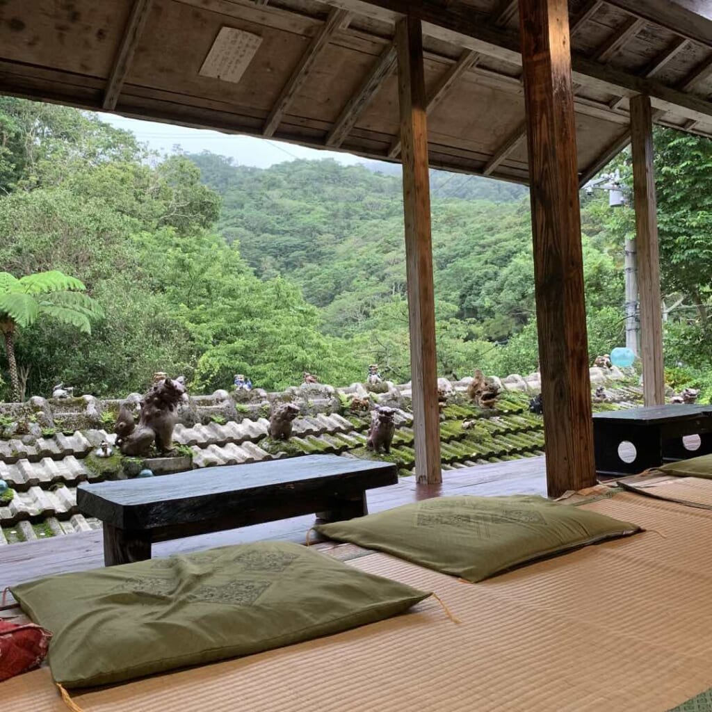 For a more traditional shopping experience in a kominka folk house setting, head to Yachimun Cafe Shisa Garden in the mountains of Motobu. The two-story café serves local treats and sells a range of pottery items, surrounded by about a hundred different yachimun shisa (Ryukyu guardian lion dogs) scattered on the rooftops and in the garden.