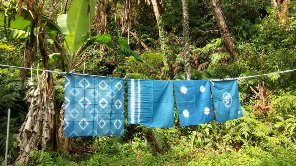 Another Okinawan craft that you can experience firsthand is Ryukyu indigo dyeing at Aikaze in the Izumi mountains of Motobu. In this area where the Ryukyu indigo plant has been growing naturally since ancient times, the couple who originally founded Aikaze indigo workshop cultivated the craft of natural fermentation dyeing for some 25 years.