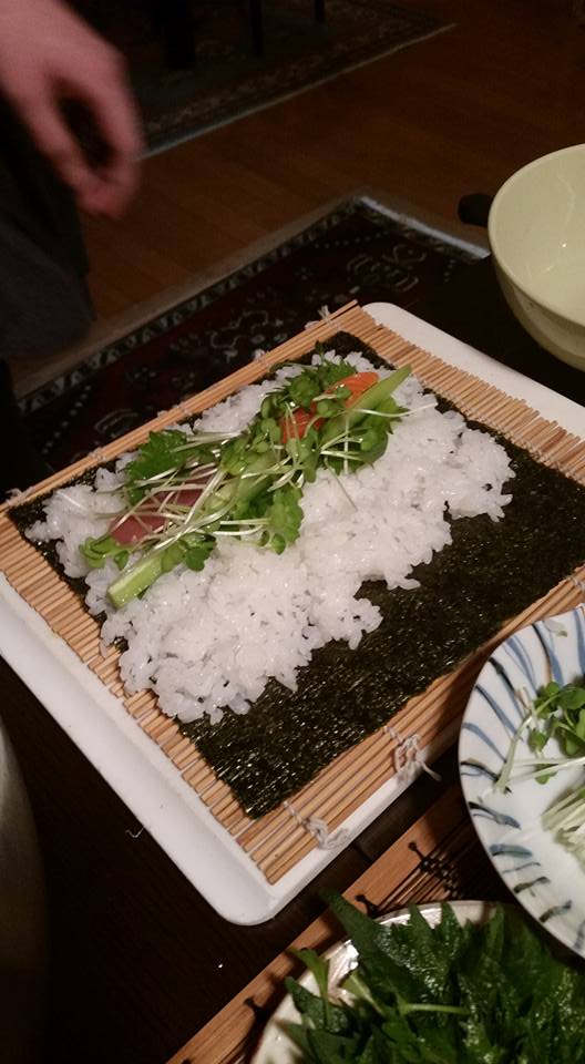 5. Place the fillings length-ways across your rectangle of rice. If inspiration strikes, get creative and make whatever combinations that come to mind.