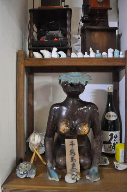 This shrine is dedicated to the kappa mummy, pictured in the glass container in the middle. During the renovation of Matsuura Ichi Suzo Brewery, this mummy was found on the old brewery’s property. I can’t say if I believe this 100%, but it’s worth a look for yourself. Because of this famous mummy, the brewery is also nicknamed Kappa Brewery.