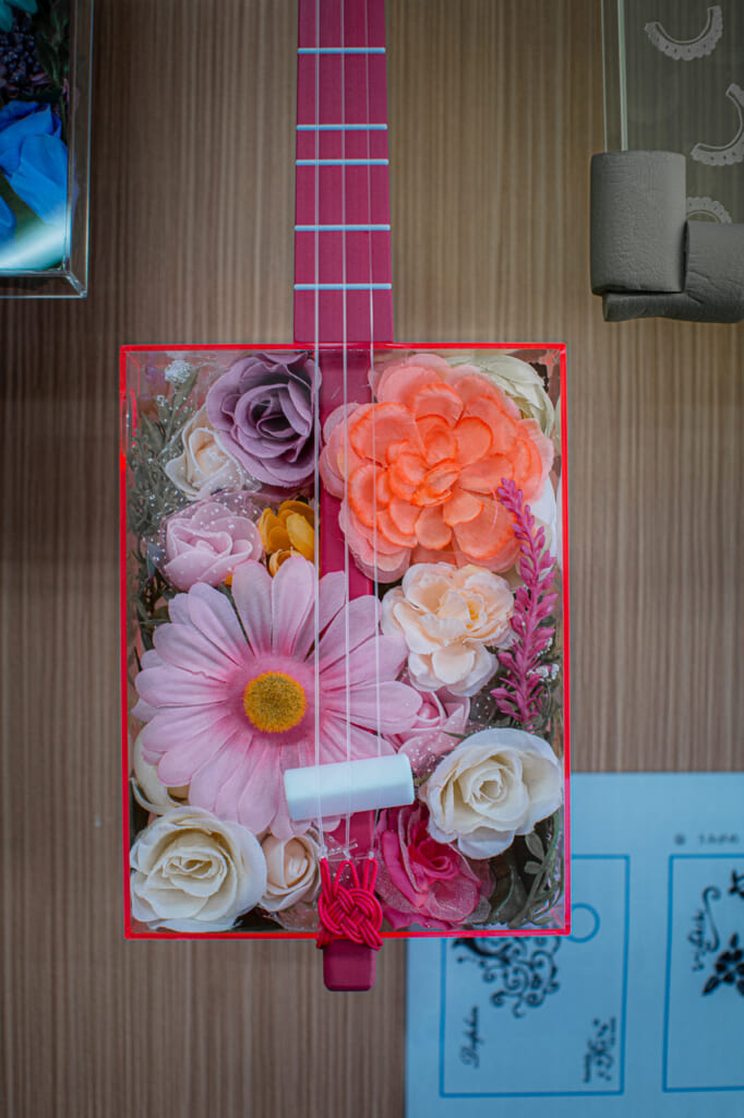 Since then, the sanlele has become Machidaya’s emblem and hundreds of artists have been able to enjoy this instrument’s unique sounds. One of the most popular products is the Umi Ashibi Sanlele, made with waterproof wood and an acrylic body. “Okinawan people socialize on the beach. We usually gather there with our families and friends and spend the day having barbecues and picnics.” (…) “That’s why we thought of creating an instrument that’s waterproof so we can enjoy its music by the sea and surrounded by our loved ones.”
