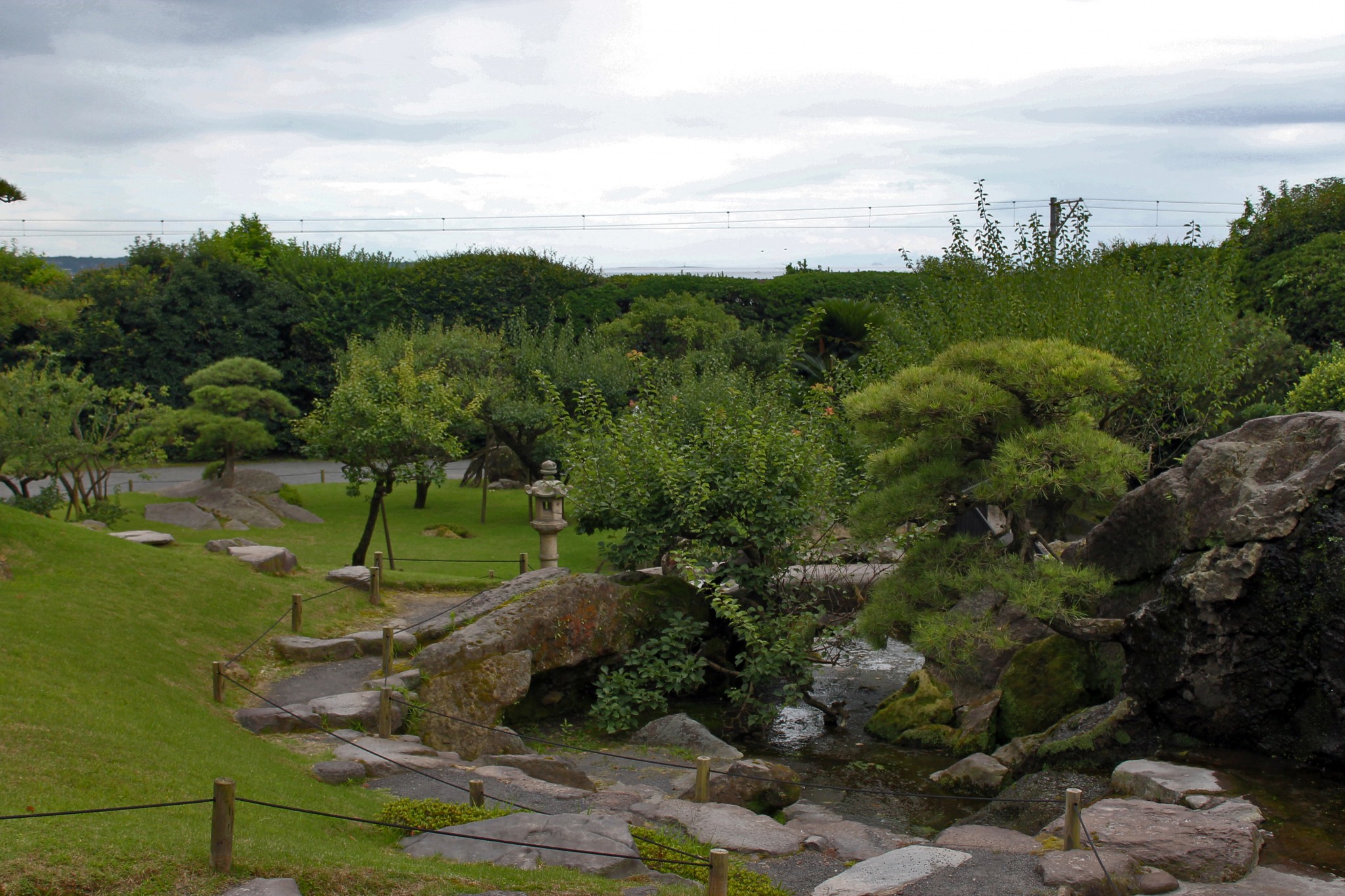 As you walk around, you come across other intriguing architectural features such as a number of little wooden shrines hidden on the bushy hills, Ryukuyan Pavilion and craft shops selling handmade traditional ceramic, accessories or Kagoshima blue glass.