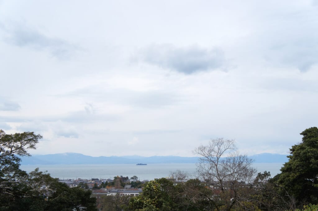 From the ramparts, the view of Lake Biwa is beautiful, and it is very pleasant to walk along the hillside, admiring the landscape and the treetops whose colors vary with the seasons.