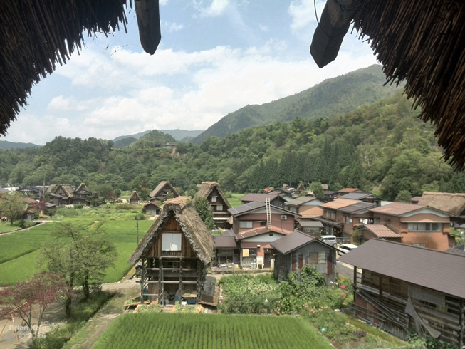 What makes Shirakawago Village unique, and in fact made it become an UNESCO World Heritage site, are its gassho-zukuri thatched roofed houses. You might be wondering what is “gassho-zukuri”? Gassho is the Japanese word for the shape of your hands when you are making a prayer with their palms facing one another and zukuri simply means construction. This form of construction was preferred in this area because it is able to handle a large amount weight from snowfall in winter, but also creates a lot of interior space which the residents used as a workshop.