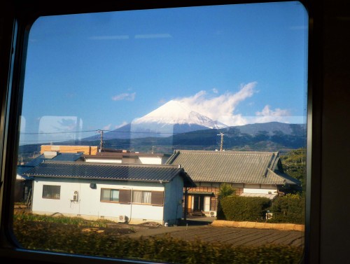 The station alone is well worth a visit. Morover, we were welcomed by a nice change in weather, which made the trip even better. This was especially great, considering how gloomy it was back in Shuzenji Onsen. A Tokaido line train ride, while always charming, is most delightful on a clear day for a very particular reason, as you can see in the following picture.