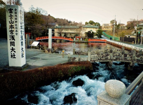 Geologists say that a lava tongue originally formed in Mount Fuji and quickly hardened due to a process of solidification can be found in this area. Covered in ashes and other porous volcanic waste, this lava tongue evolved into an impermeable stratum that now serves as a subterranean course, collecting rainwater and melted mountain ice. The little Wakutama pond, that we mentioned before emerged right where the course surfaces. Water discharged by the pond ended up turning into the Kanda River, whose course shapes Fujinomiya.
