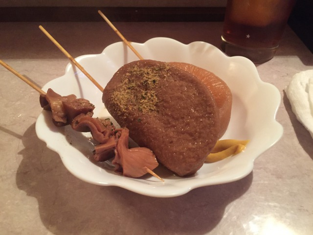 Though many regions of Japan claim to have delectable oden, Shizuoka City in Shizuoka Prefecture is (quite literally) the dark horse when it comes to oden. Shizuoka oden is known for having a much darker dashi broth than your typical oden stock, as it is enriched with beef and soy sauce which gives it a much richer flavour than its milder Kanto or Kansai area counterparts. The oden is then sprinkled with powdered ground fish and seaweed, served with a dollop of spicy mustard.