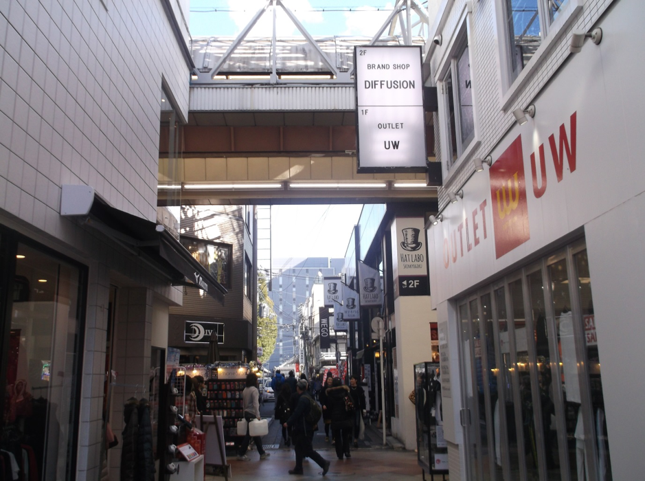Conversely, if you are to visit, for example, Namba in Osaka, the arcade streets are awash with business, tourism and contemporary stores. It can be quite hard to move through, especially on a rainy day, as the long stretch is broken up by crossings in the road, where people open up their umbrellas and squeeze together over the sodden streets. Here you will find a mix of big brands such as Adidas, The Disney Store, and Zara, but you will of course still find some more unique stores. The location of the stores can seem rather random – one store will be lingerie, the next will be a 100 yen store or even a popcorn store. With all the hustle and bustle, it is best to keep moving, which can make entering a shop hard, especially when running on a system of keeping to the left. You will find that you do often need to just simply push through people, or else be pushed!