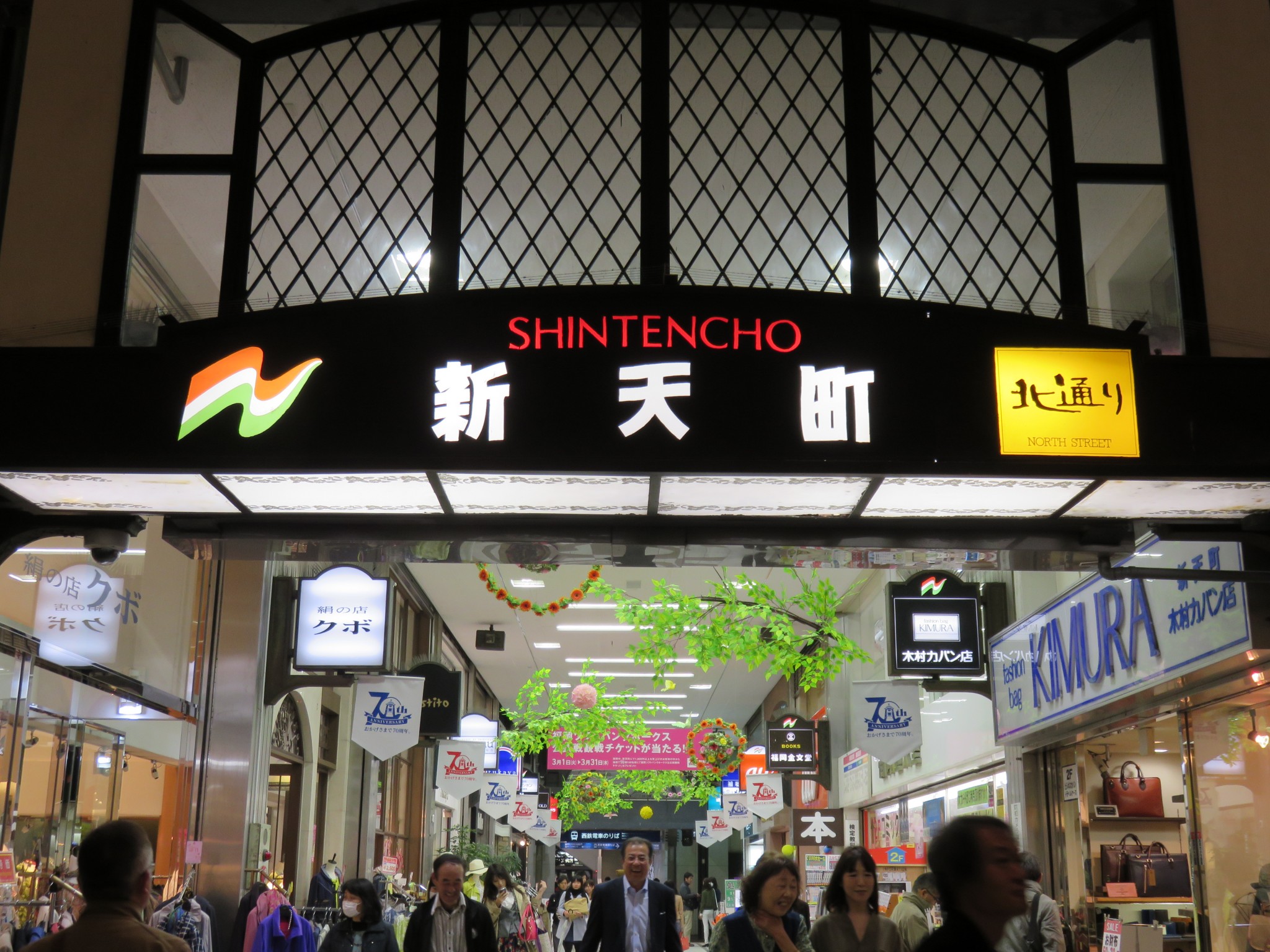 Just south of Tenjin Station is the shopping arcade, Shintencho. This shopping arcade has a more traditional feel to it than the surrounding malls. There are several kinds of shops and cafes, including some selling kimonos and other traditional clothing.