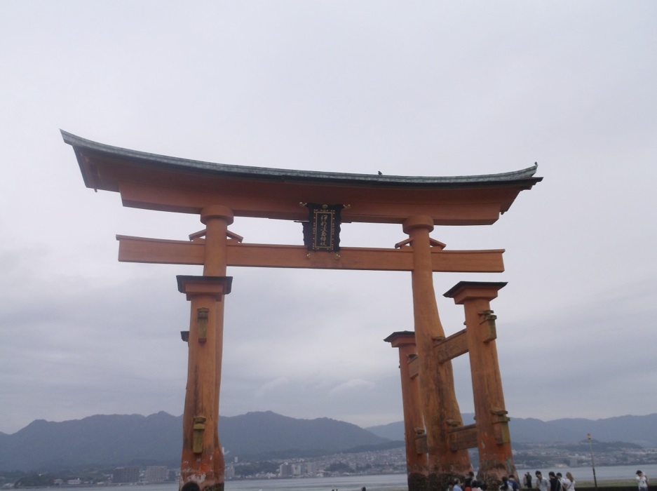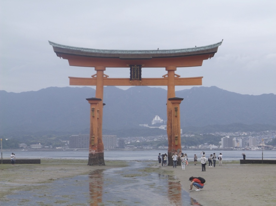 The tide was low, and a spew of people flowed out onto the beach. Nevertheless, the gate was awesome. It is truly quite a sight to see the magnificent orange-red towering gate slowly emerge on the horizon.